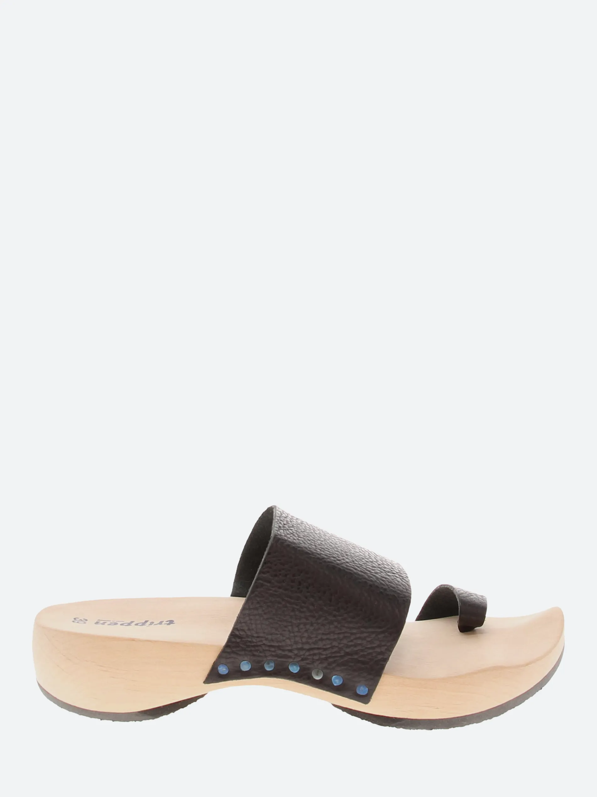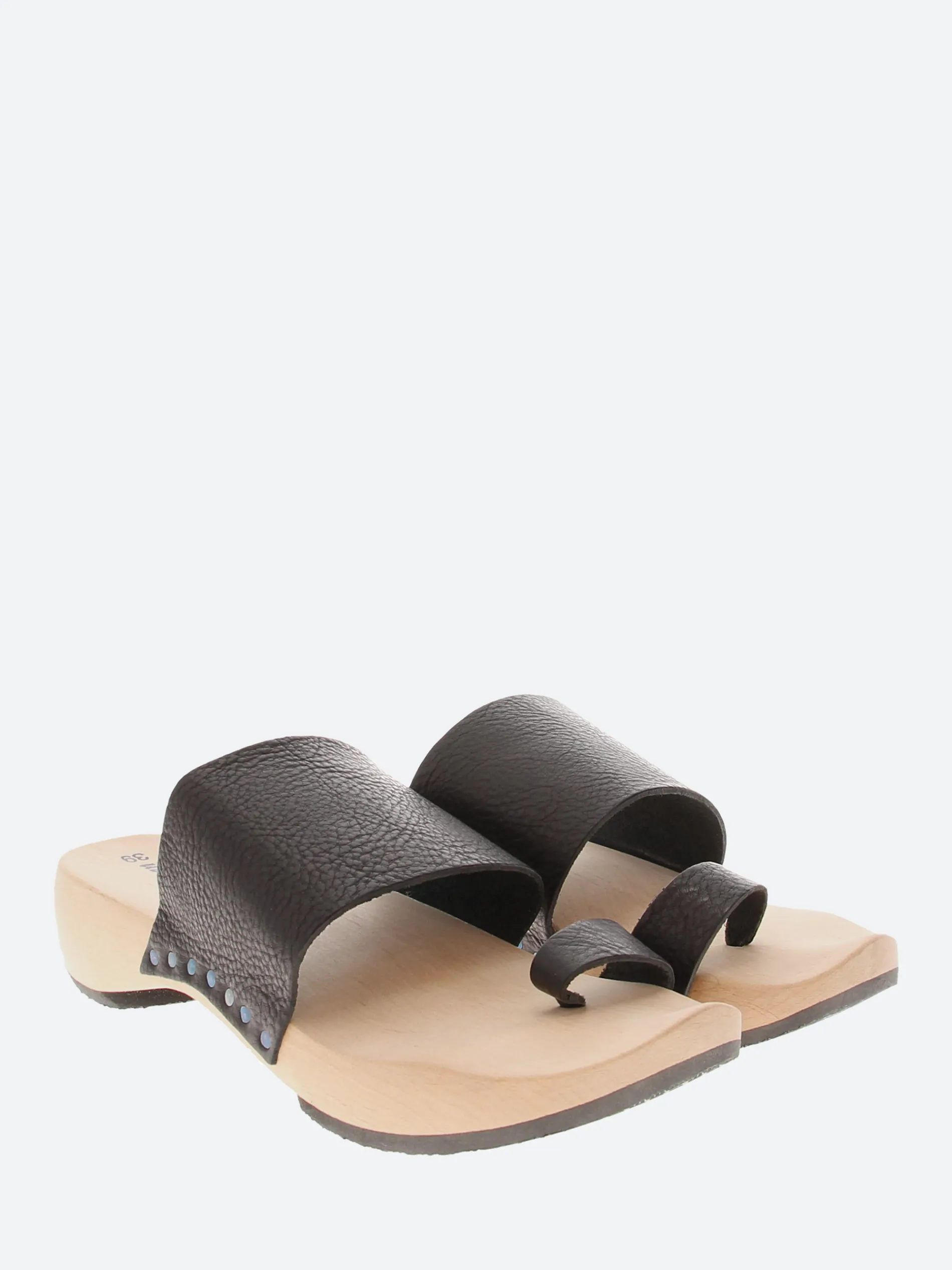 - Wood sole with rubber tread