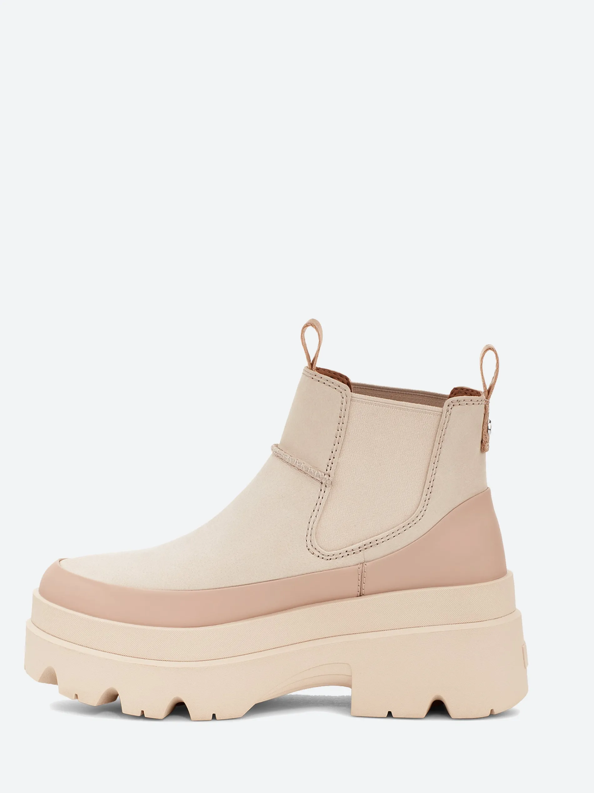 The fun, maximalist style of the UGG Brisbane meets sleek Chelsea paneling. A waterproof leather upper offers defense from the elements, while the 1.75″ platform and 2.5″ heel make a bold statement.