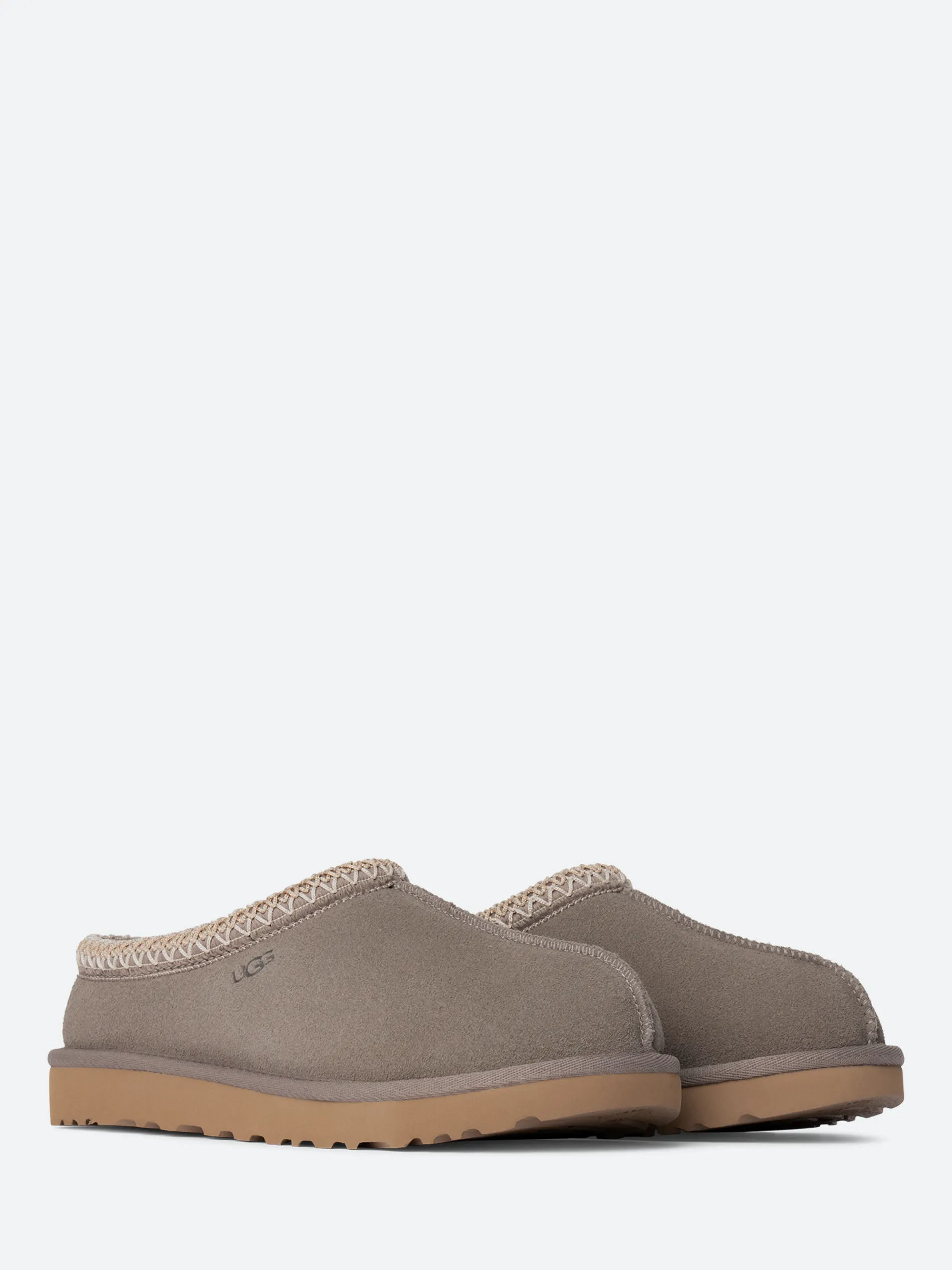 UGG slipper lined with plush sheepskin and upcycled wool, it’s crafted from soft suede with an embroidered braid and an easy slip-on silhouette.