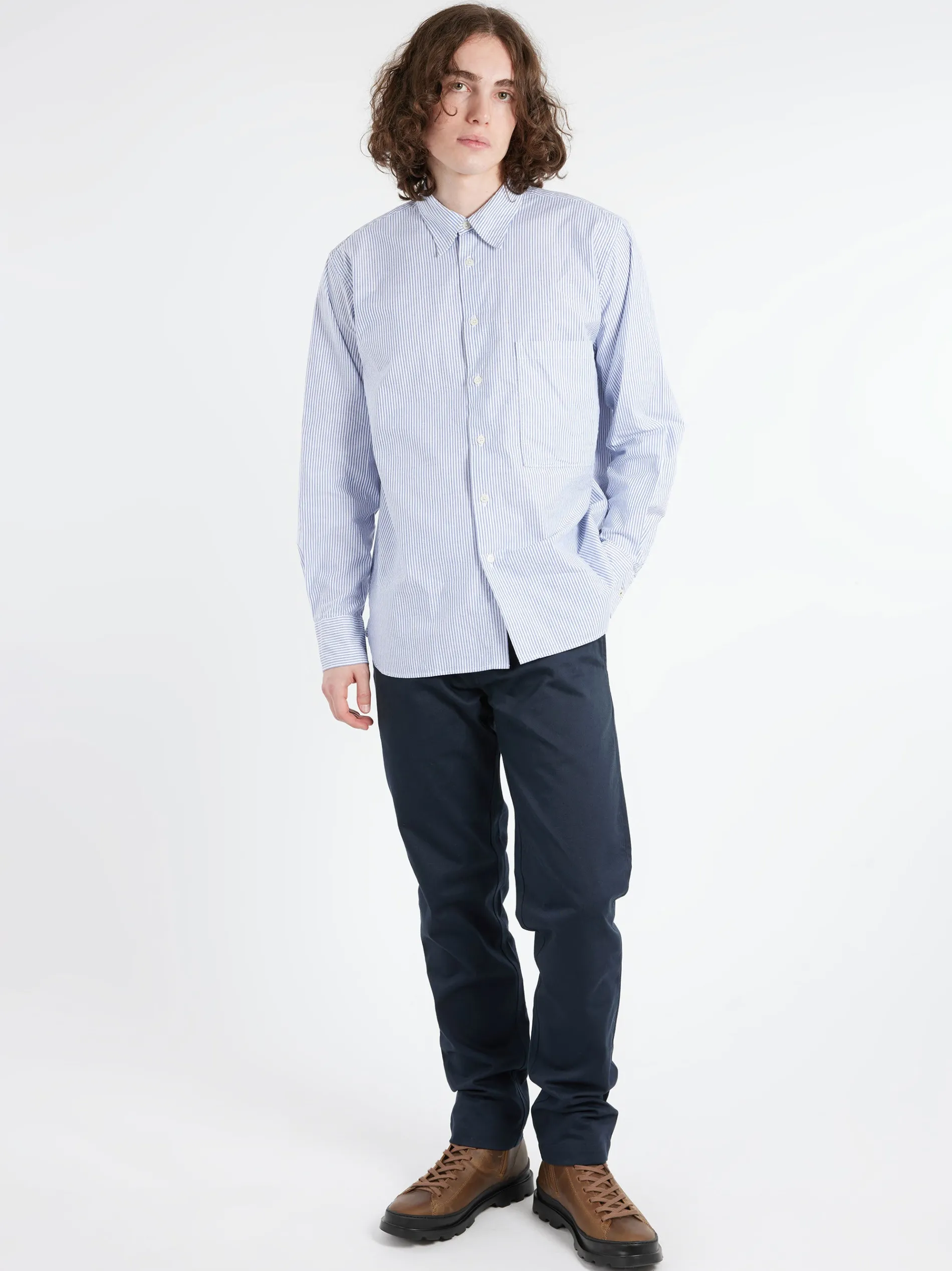 Slimish, straight-leg fit with the lowest rise of all Universal Works trousers.