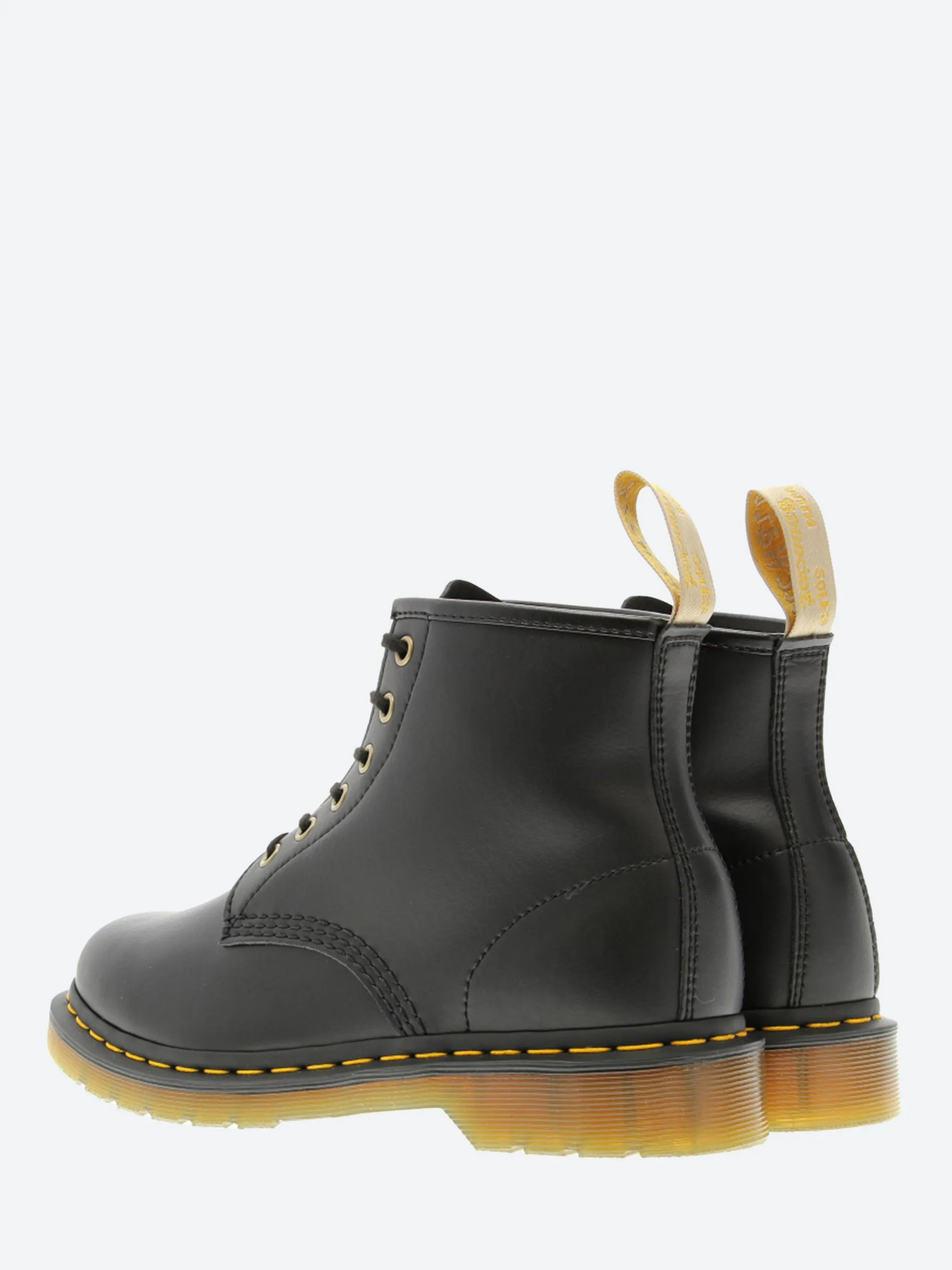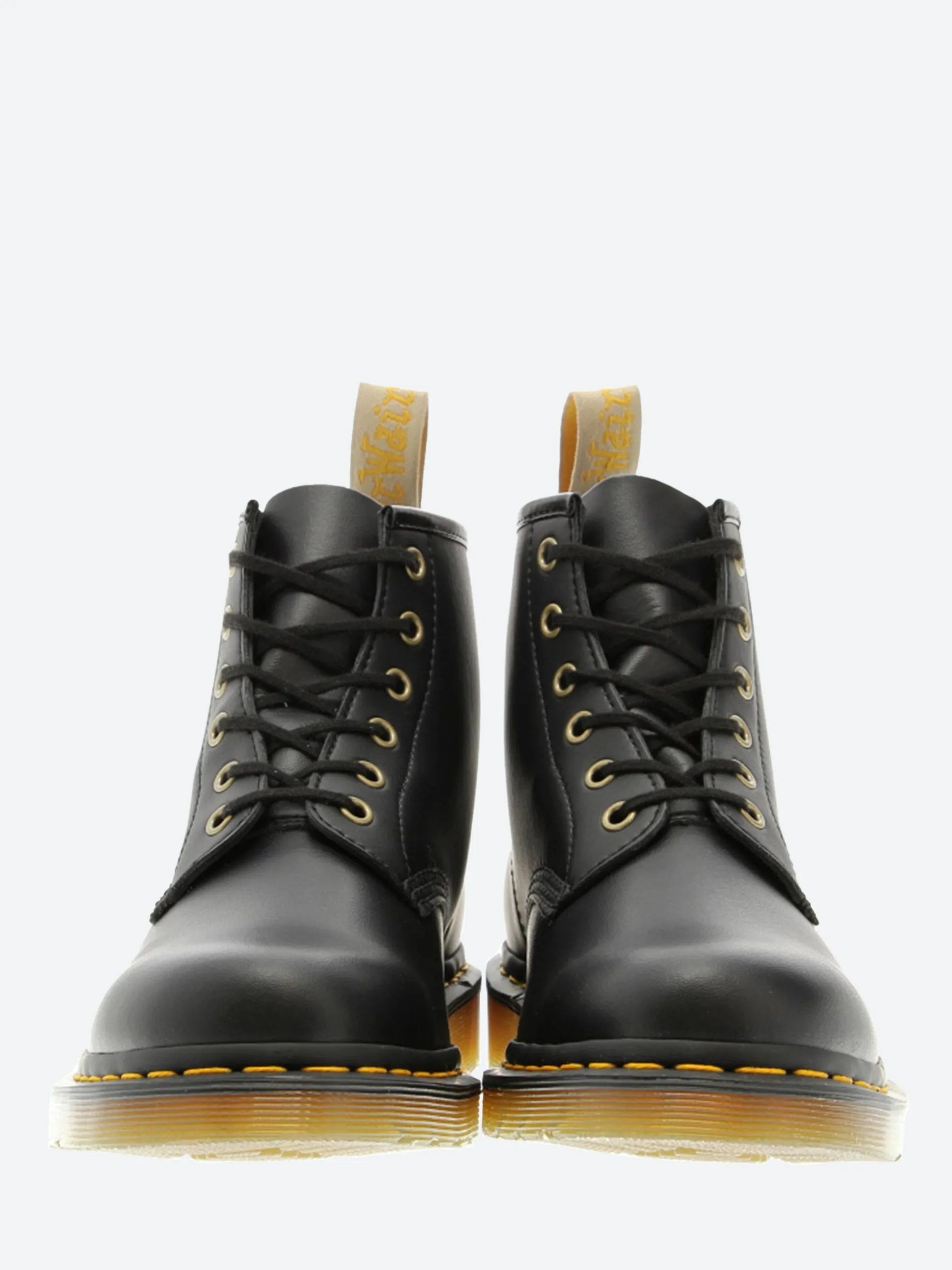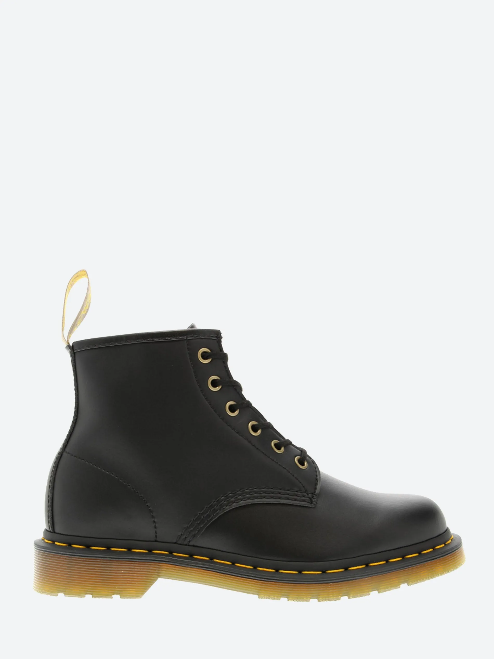 The 101 sits lower on the ankle, but is still an instantly recognizable Dr. Martens silhouette. Clean, sharp and solid, the boot combines utilitarian workwear with classic lines, puritan stitching and unmistakable attitude.