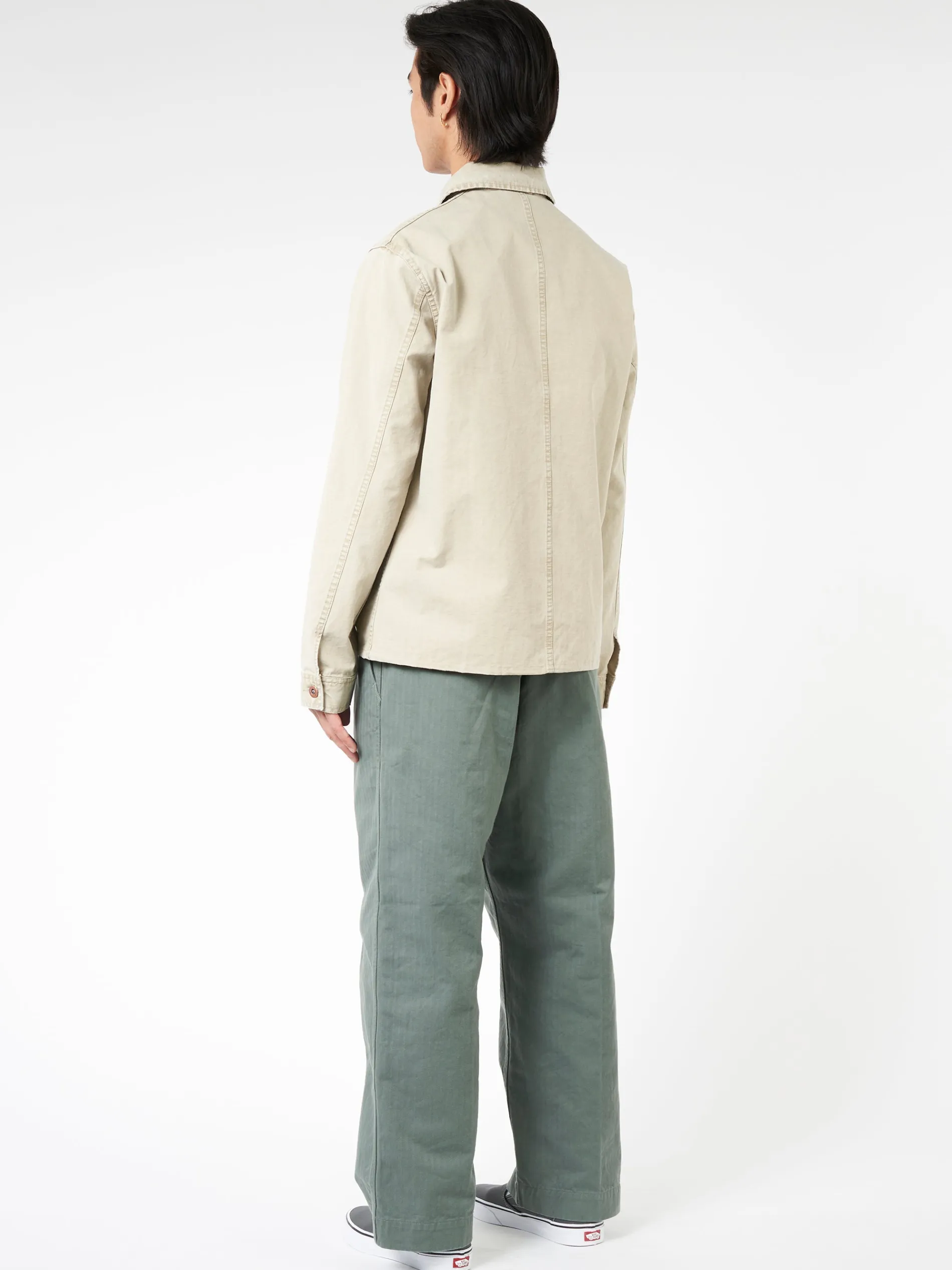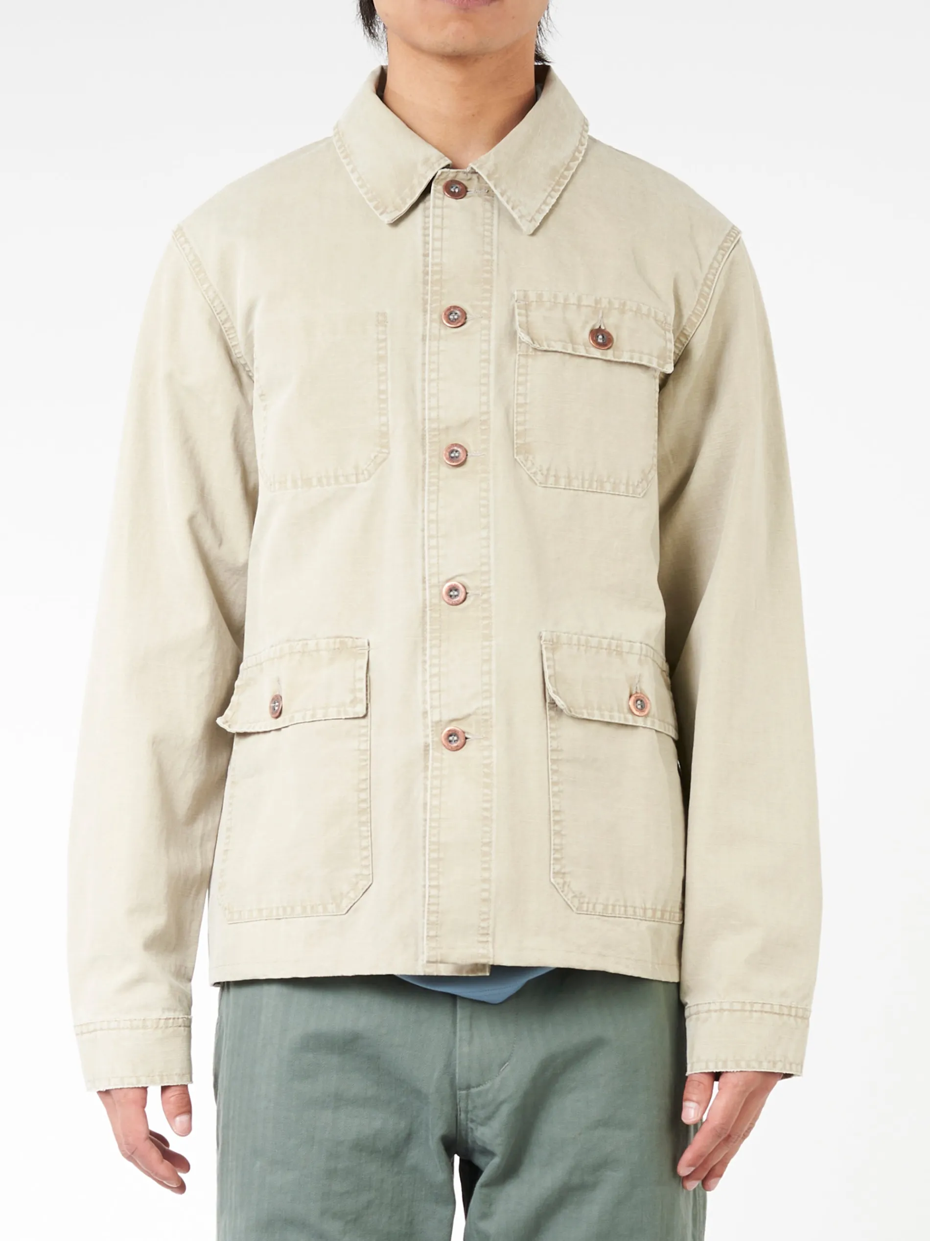 A classic French workwear jacket made from organic cotton dungaree twill. This fabric is made of two-ply warp yarns (two yarns twisted together), ensuring better resistance.