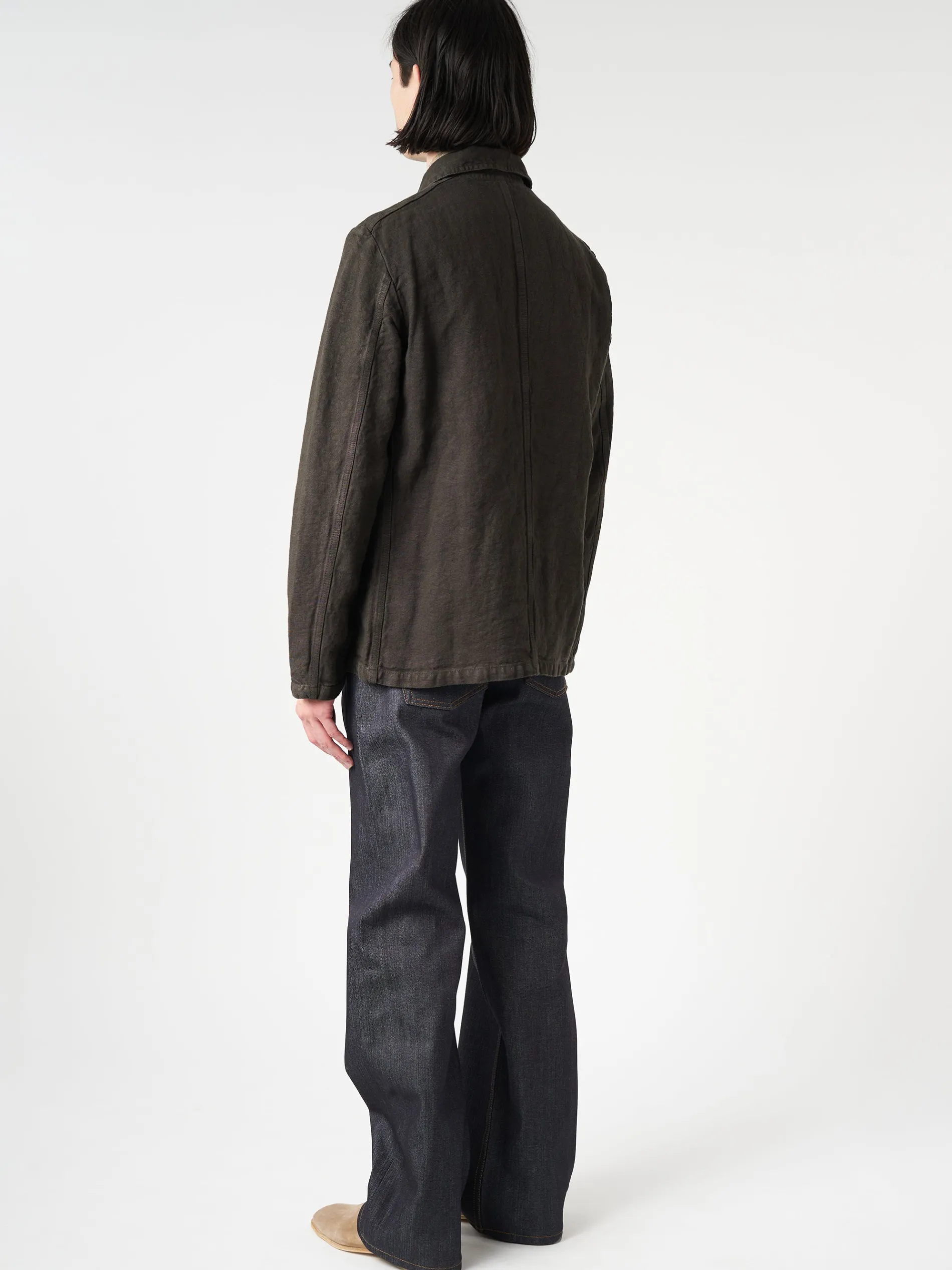 The Vetra chore jacket stays true to their original fit using the same traditional methods and materials they did many years ago. This jacket has been crafted in a dark brown heavy linen canvas.