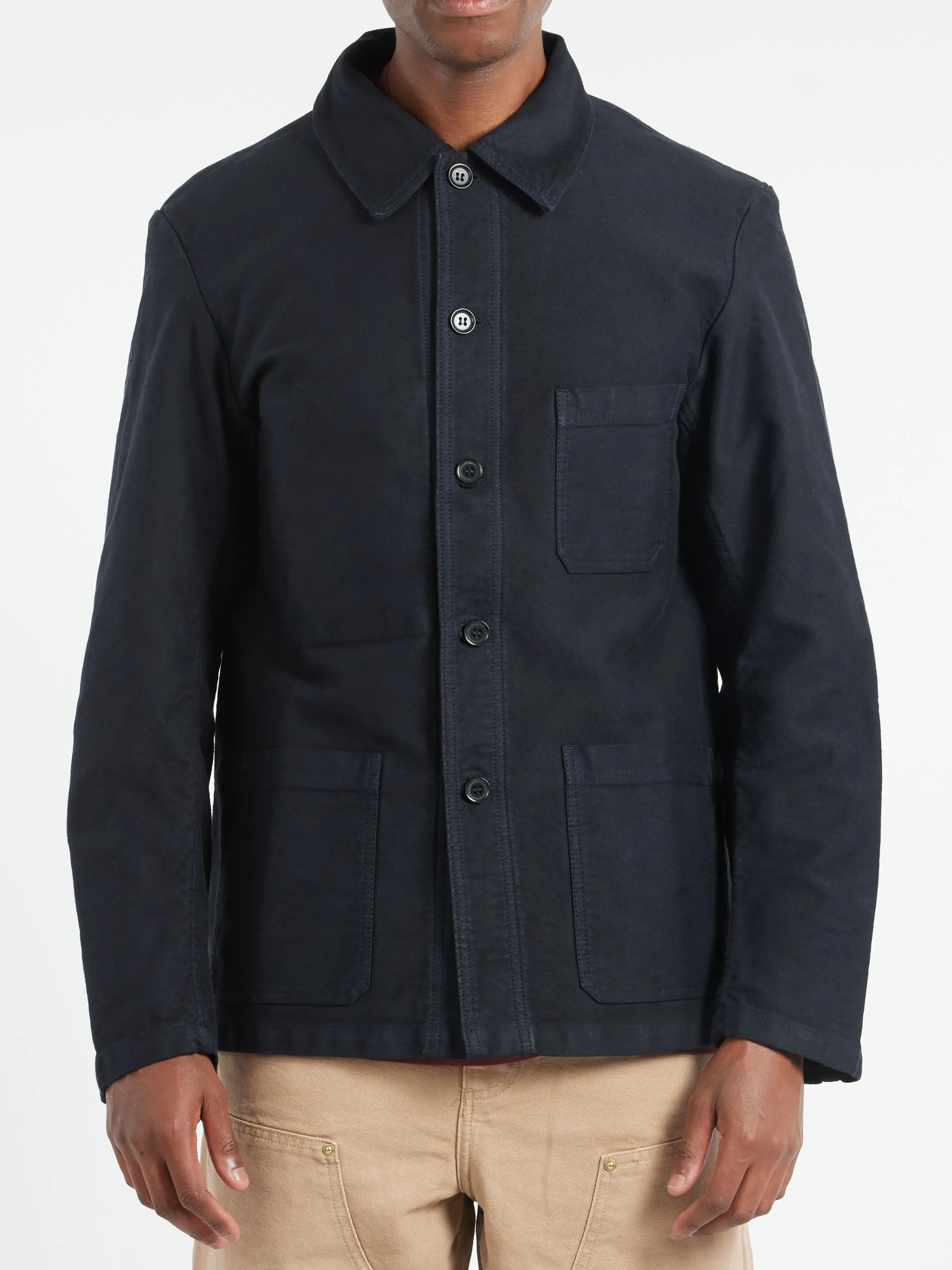 A classic French workwear jacket made from a washed moleskin.