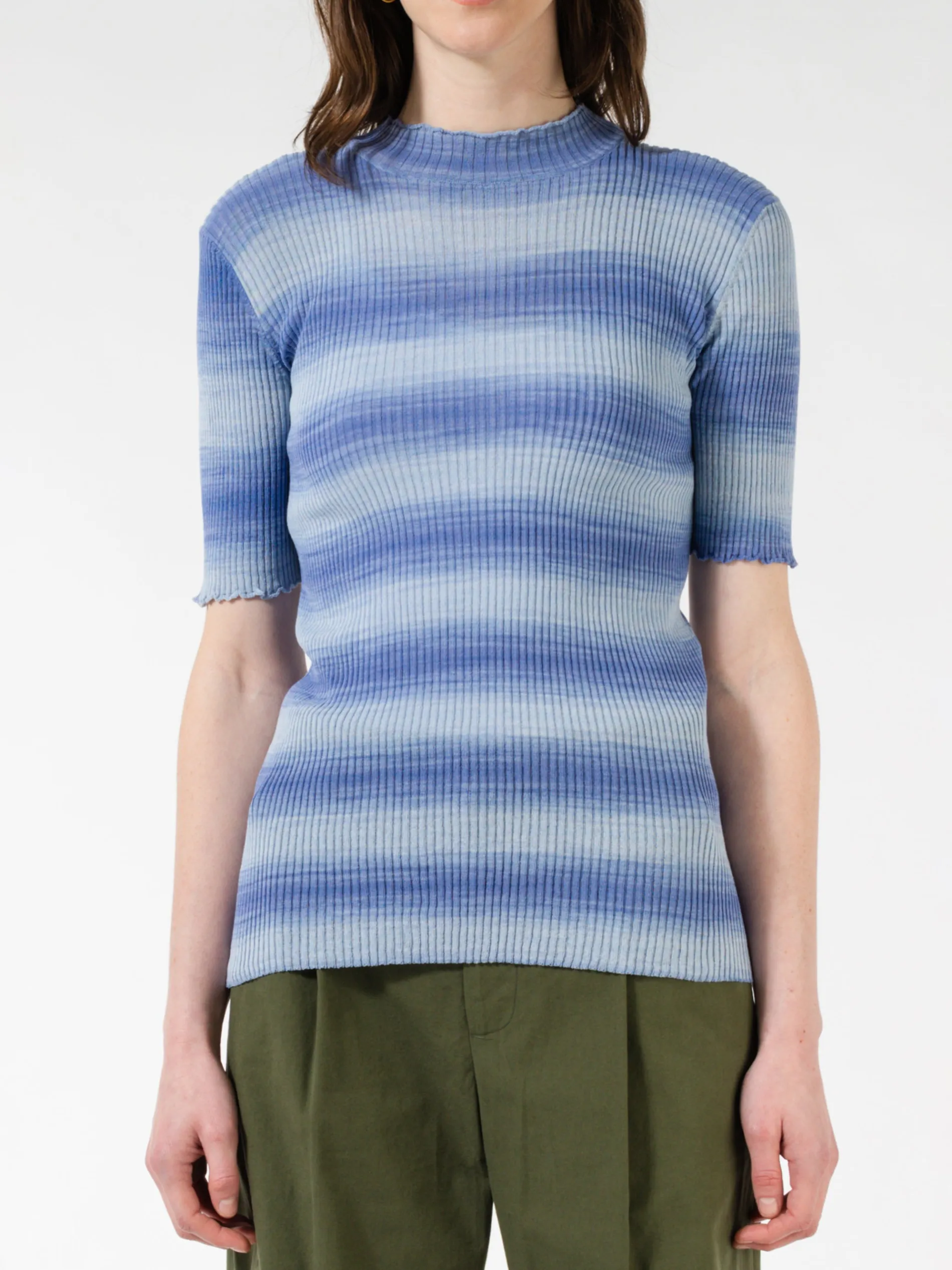 - Scalloped high collar