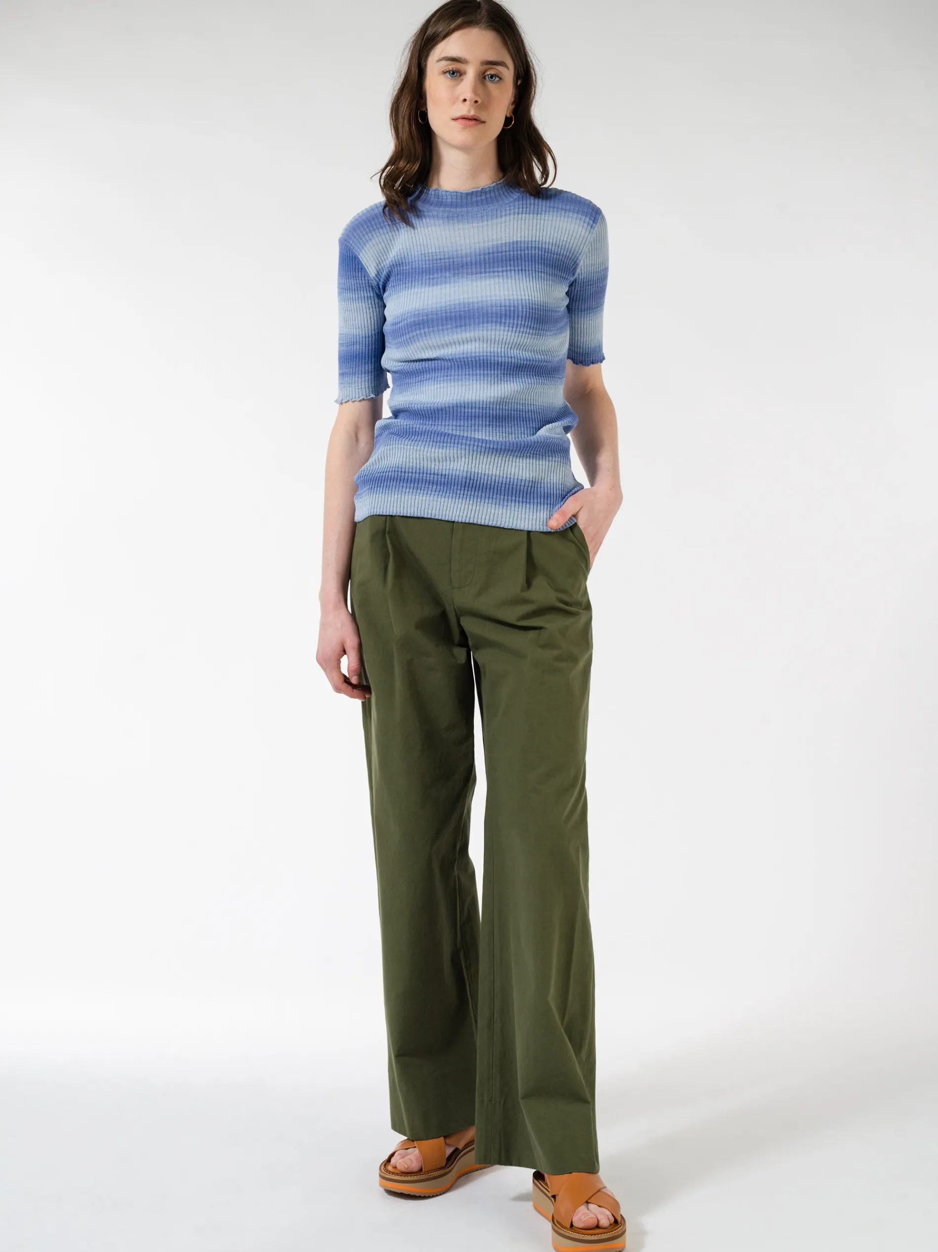 - Scalloped short sleeves