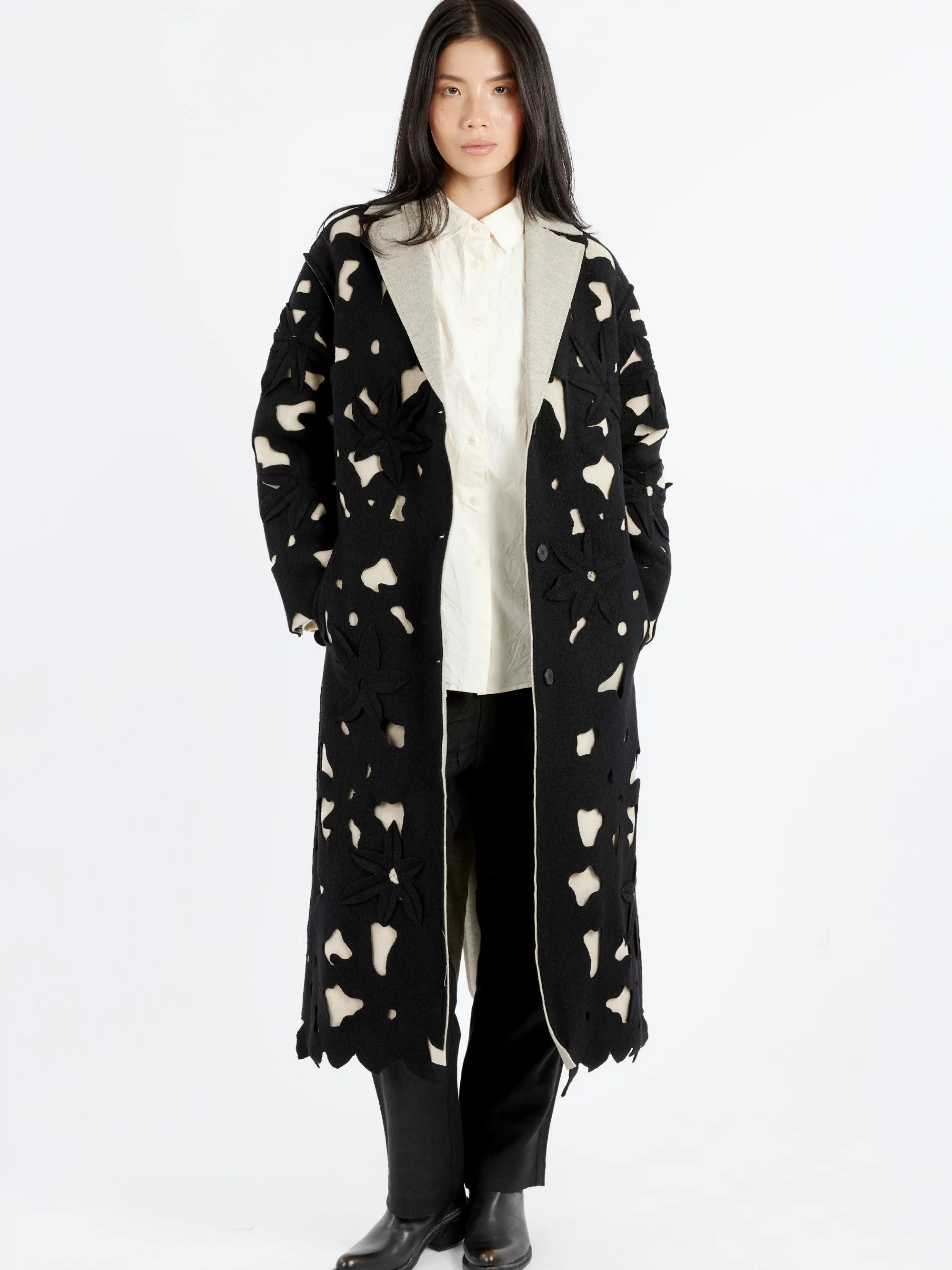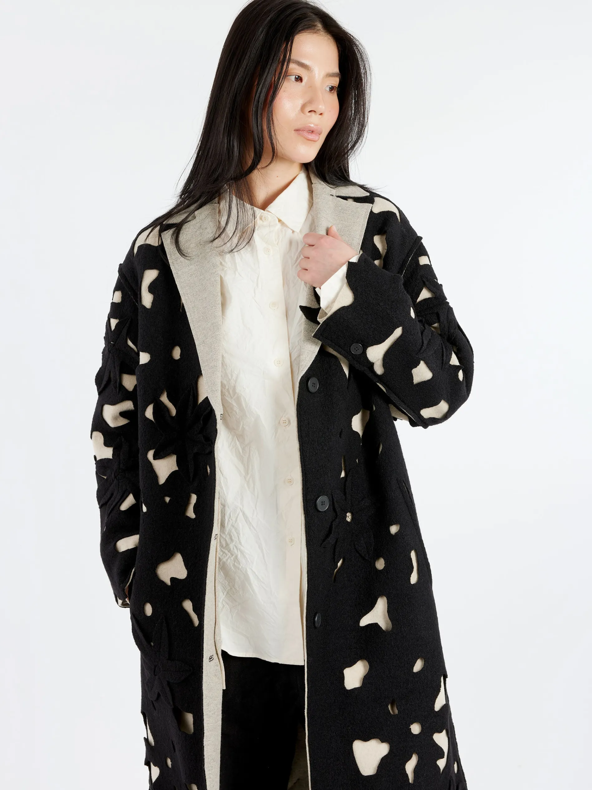 - Single-breasted silhouette
