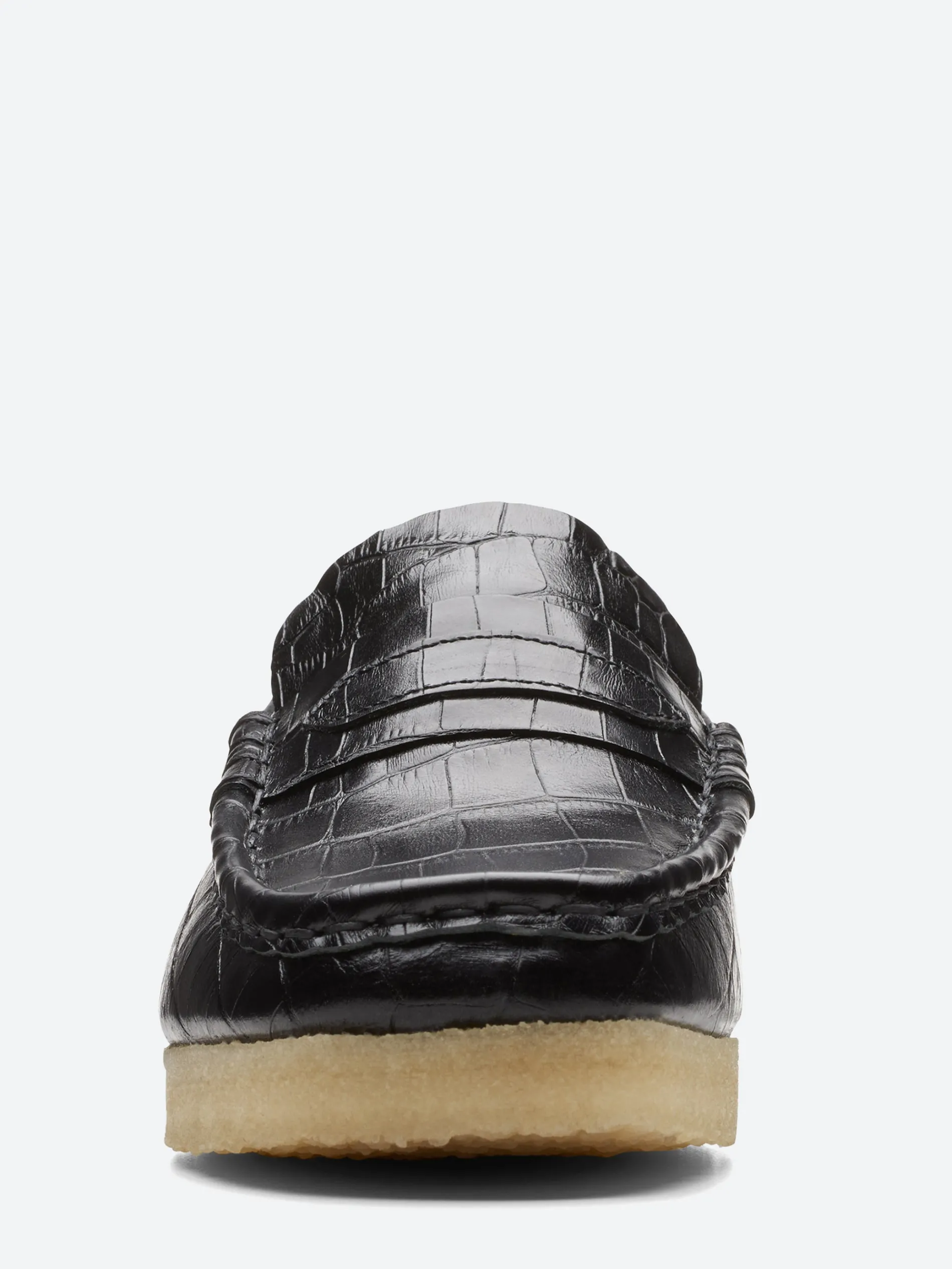 The Wallabee Loafer combines a vintage-inspired croc-effect upper with a chunky crepe sole. Premium leather uppers in a black colourway make for effortless styling – while hand stitched apron seams enhance its crafted look.