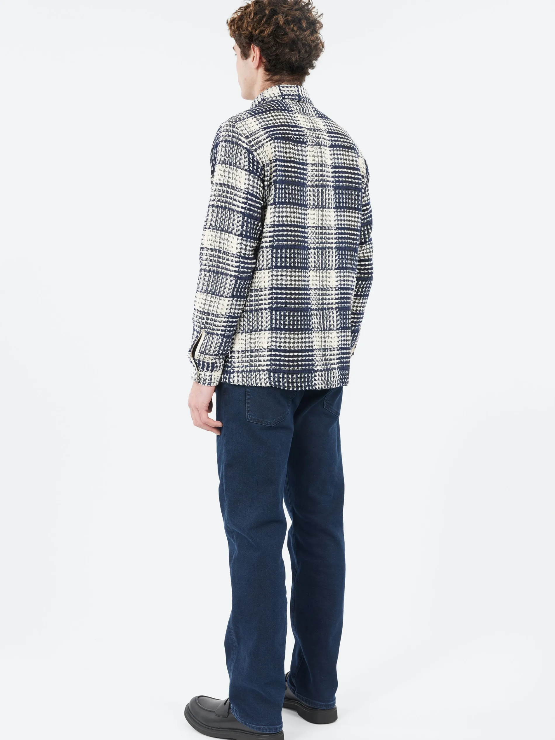 The Wax London signature piece. The Whiting, a year-round staple, returns in a new addle check woven design that mixes navy and ecru yarns. This fabric is made sustainably by a family-run French mill using recycled cotton to create an effortlessly wearable overshirt that combines timeless style with responsible craftsmanship.