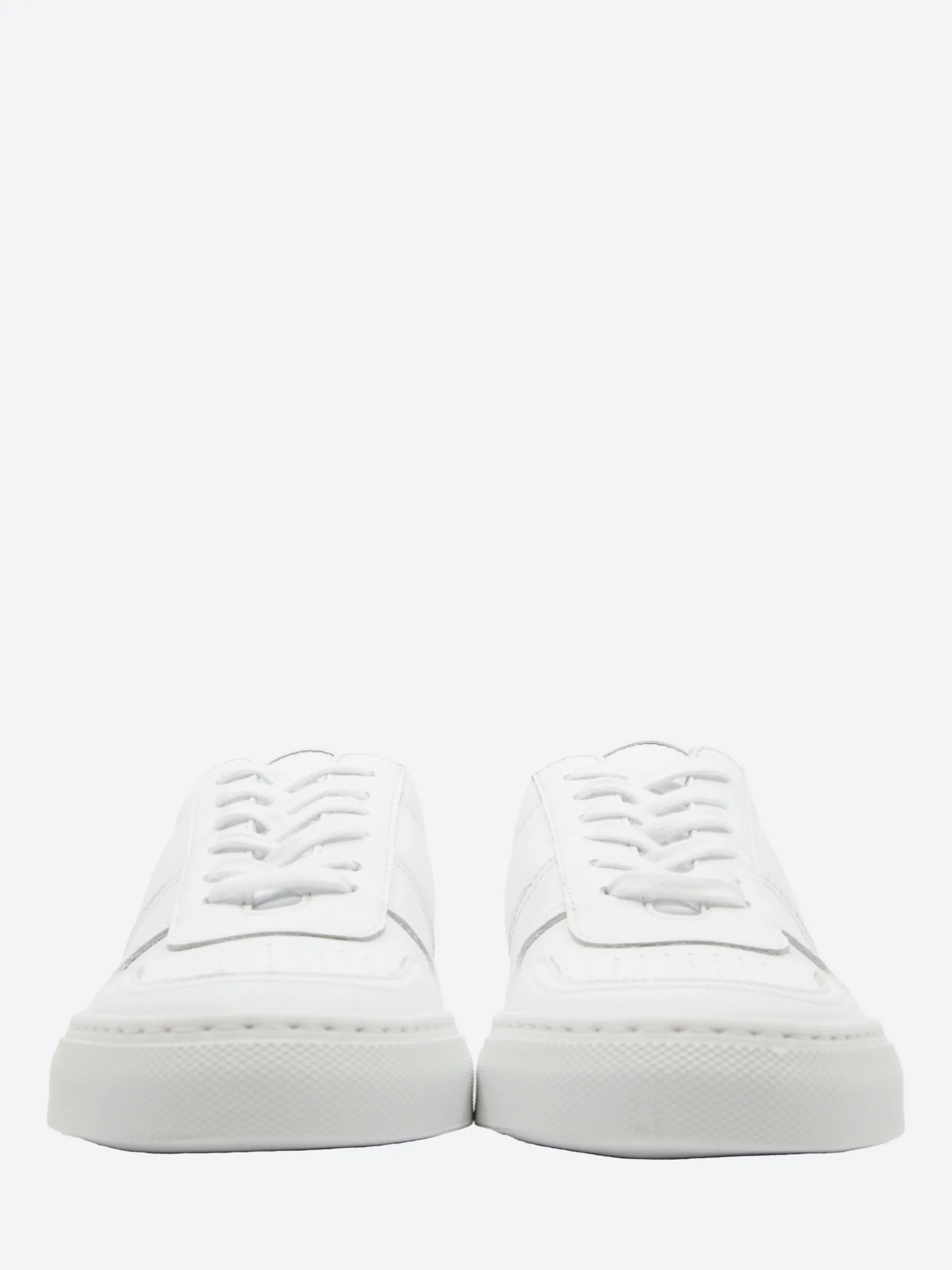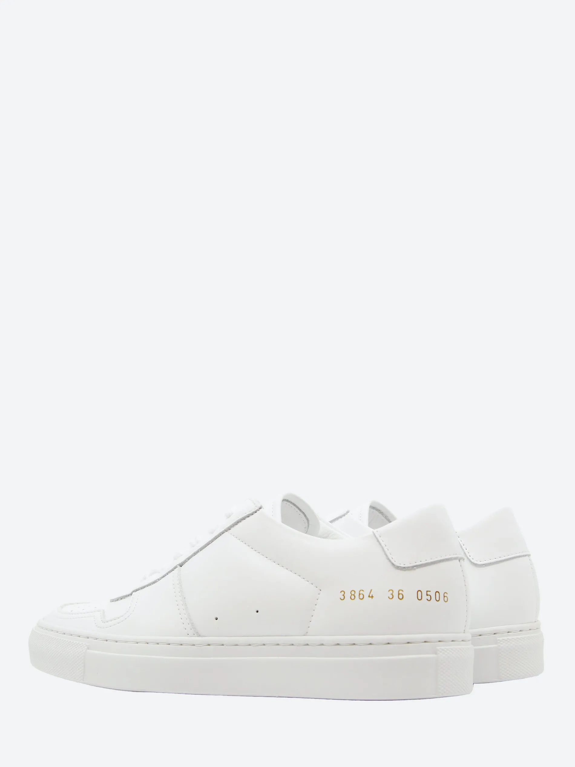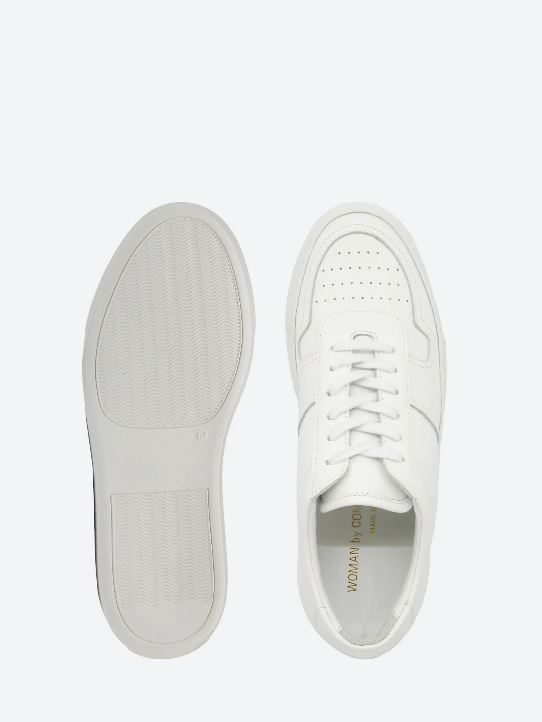 Woman by Common Projects BBall Low is a classic lace-up low top sneaker. Using top grain leather for the upper and a full leather lining makes this a luxury Italian made sneaker. The clean lines and minimal gold branding exemplify everything the brand stands for.