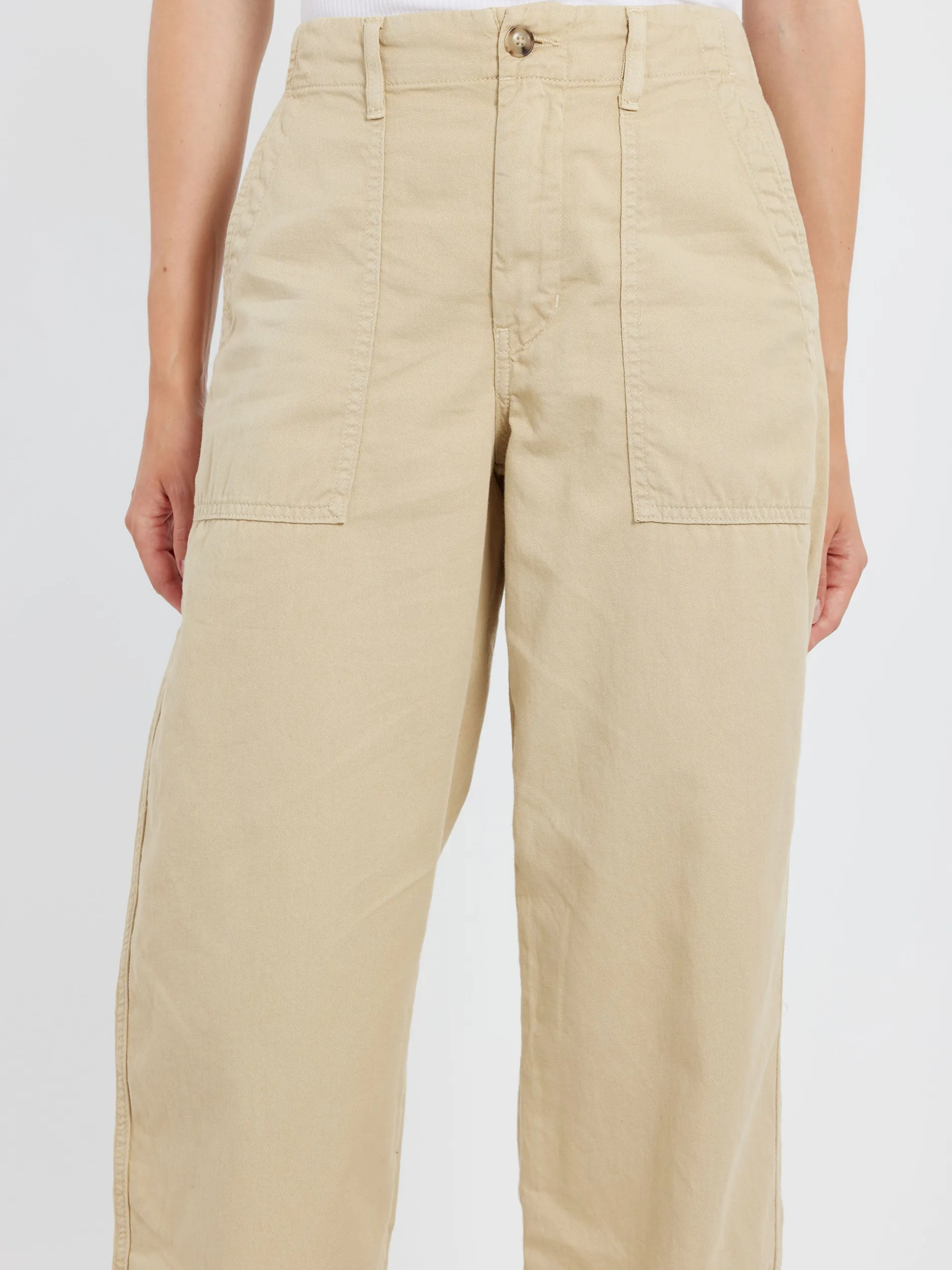 Xirena Morleigh is new this season in vintage washed cotton twill. This 5-pocket utility pant features a wide leg.