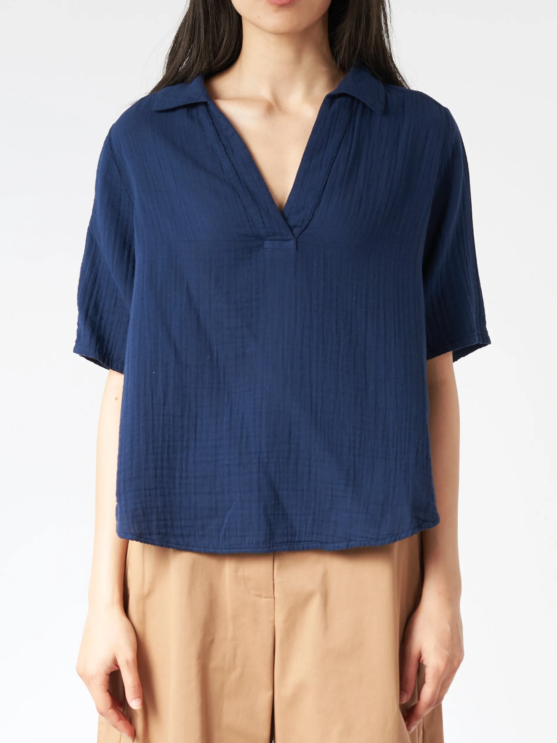 The Ryder Top is an effortless warm-weather staple, cut from washed double faced cotton gauze with an easy, deep V-neckline.