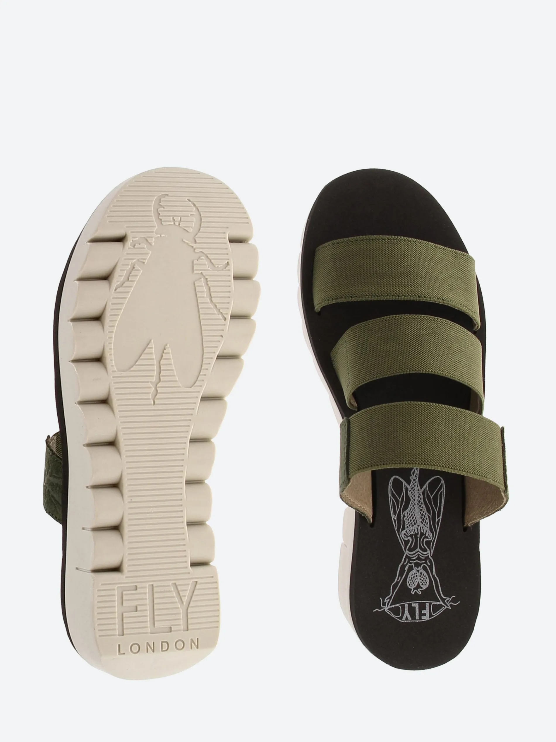 Fly London Yian elegant cupido wedge sandals with a sporty influence. The cushioned insole will keep you comfortable wherever you go.