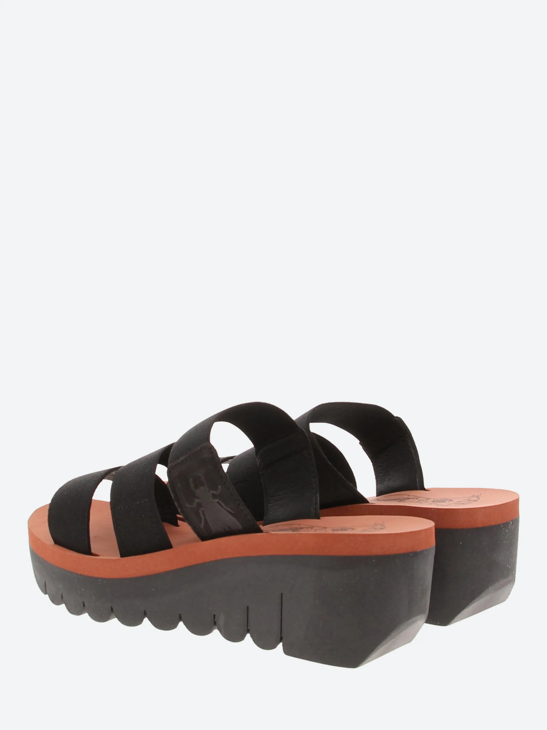 Fly London Yian elegant cupido wedge sandals with a sporty influence. The cushioned insole will keep you comfortable wherever you go.
