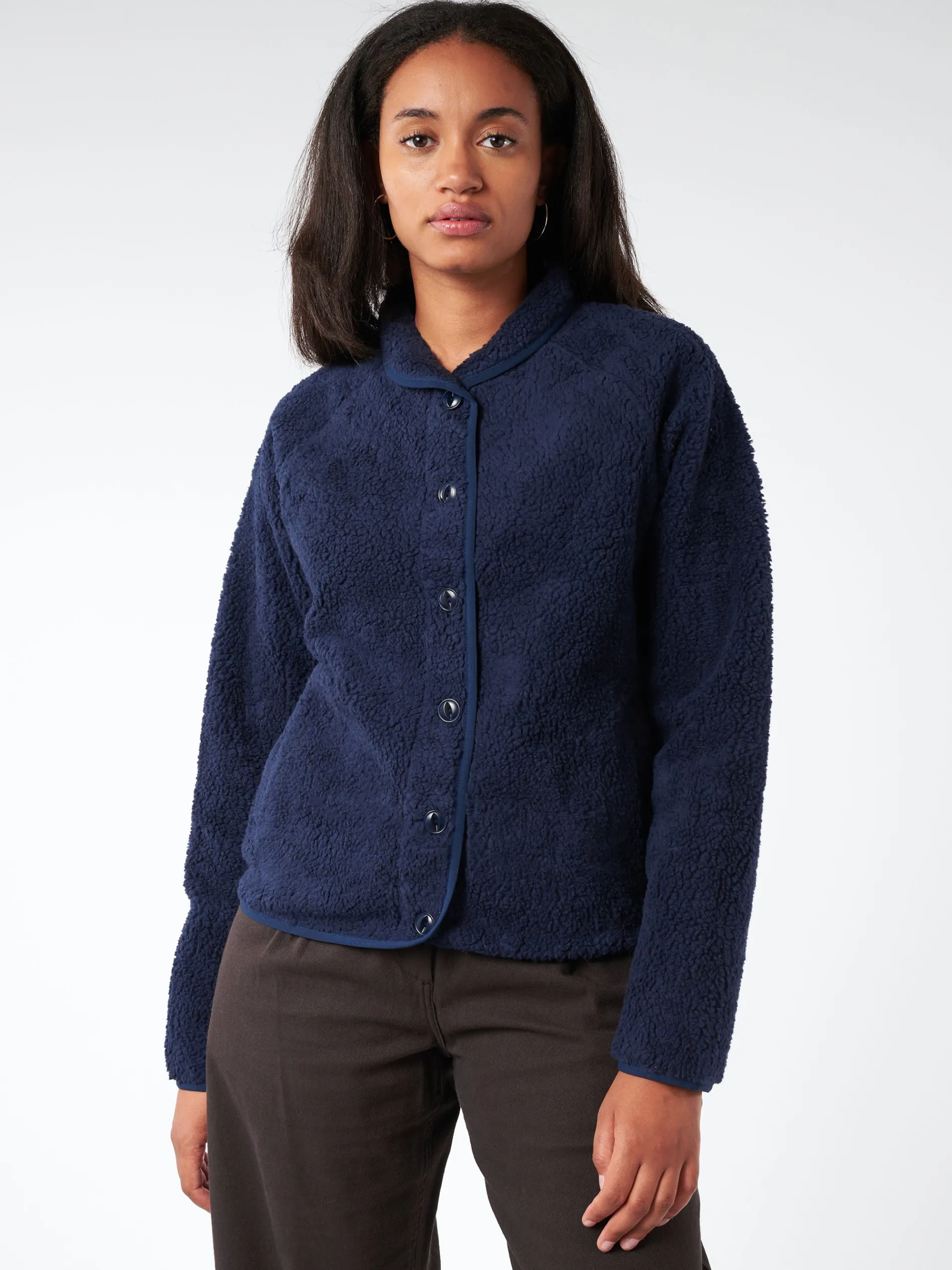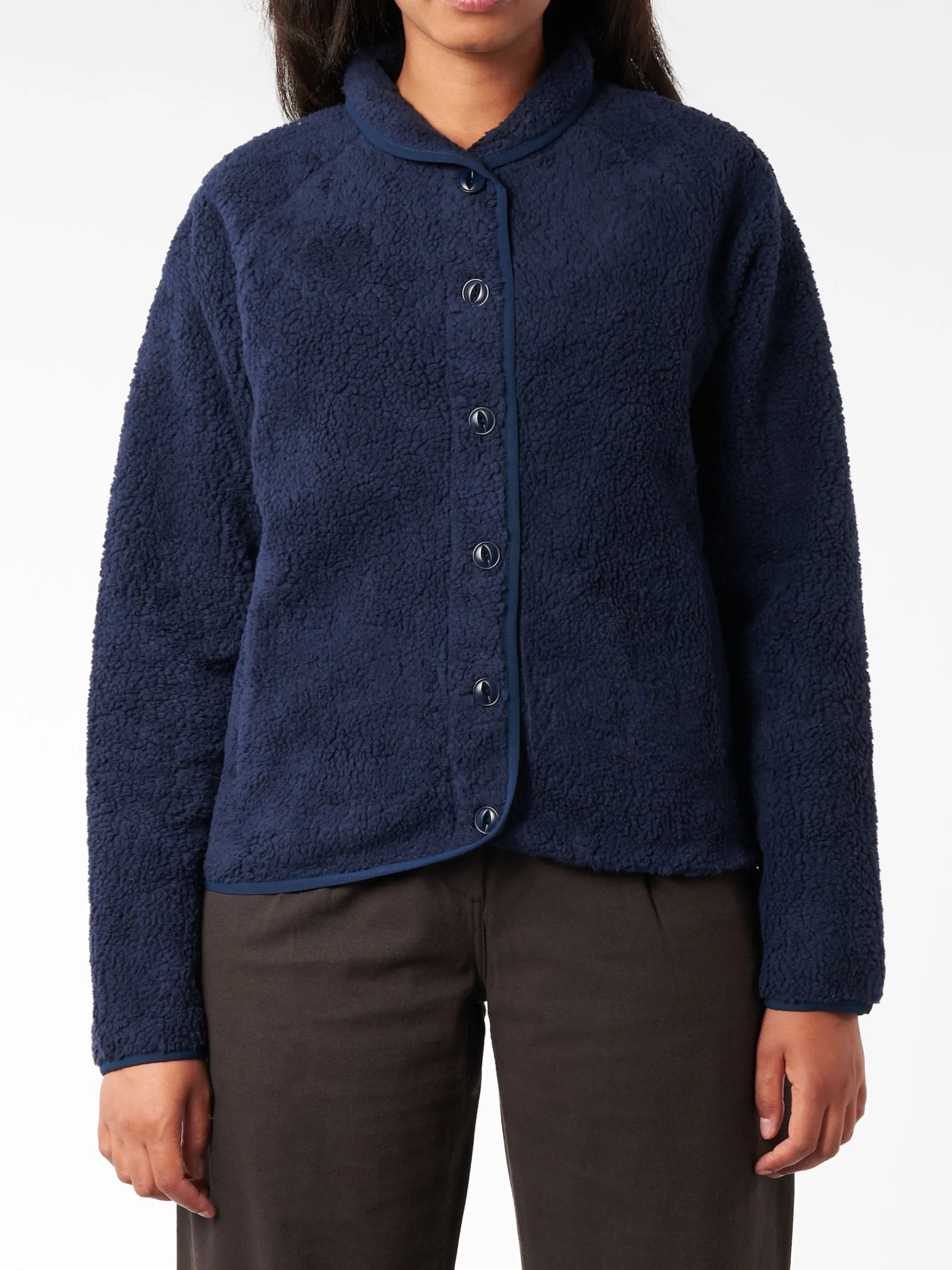Fleece jacket cut with a bound-edge shawl collar from a fully recycled Italian cotton blend. Standard slim fit.