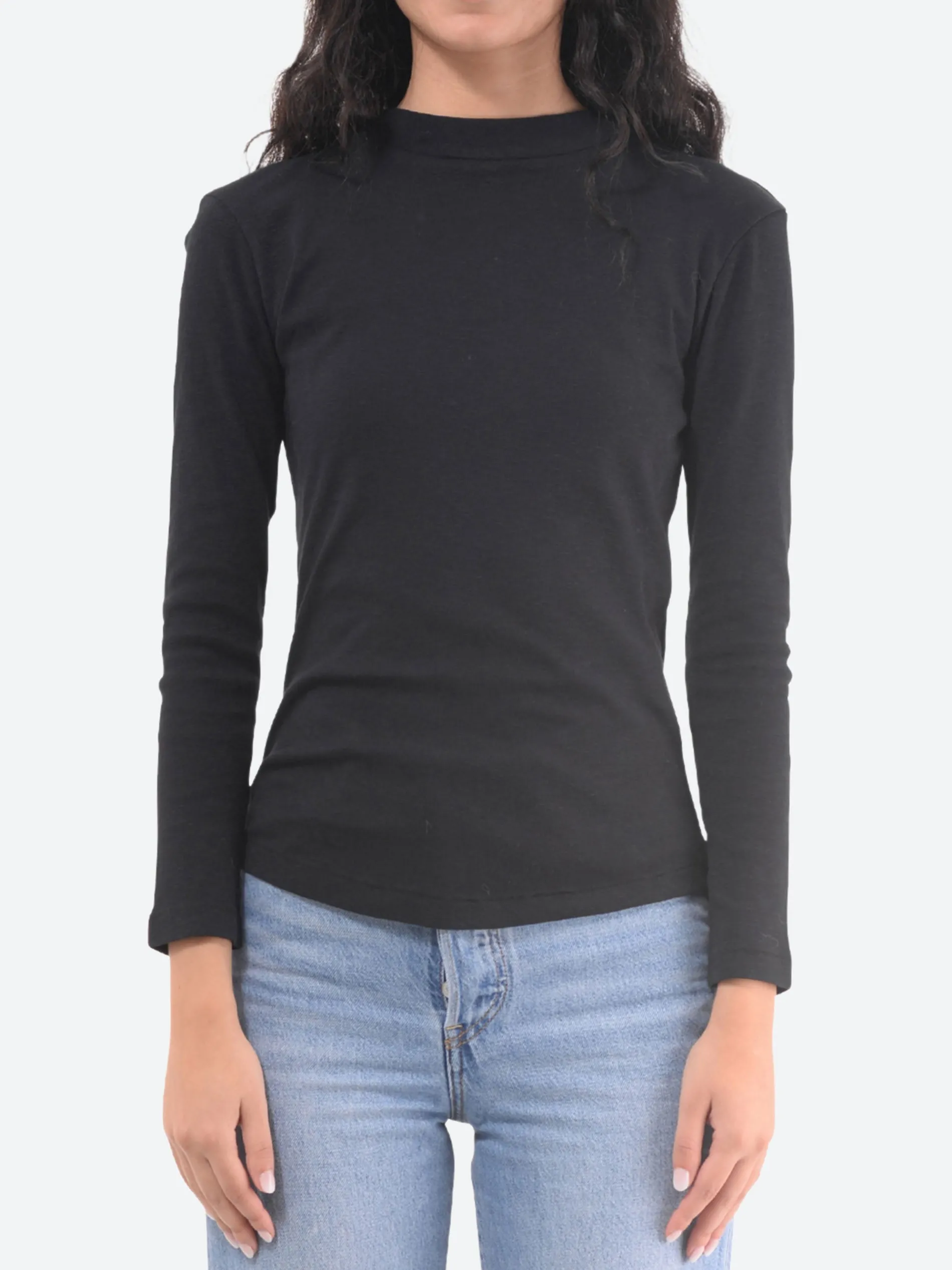 Fitted slub cotton long sleeve with a curved hem and semi-high neck.