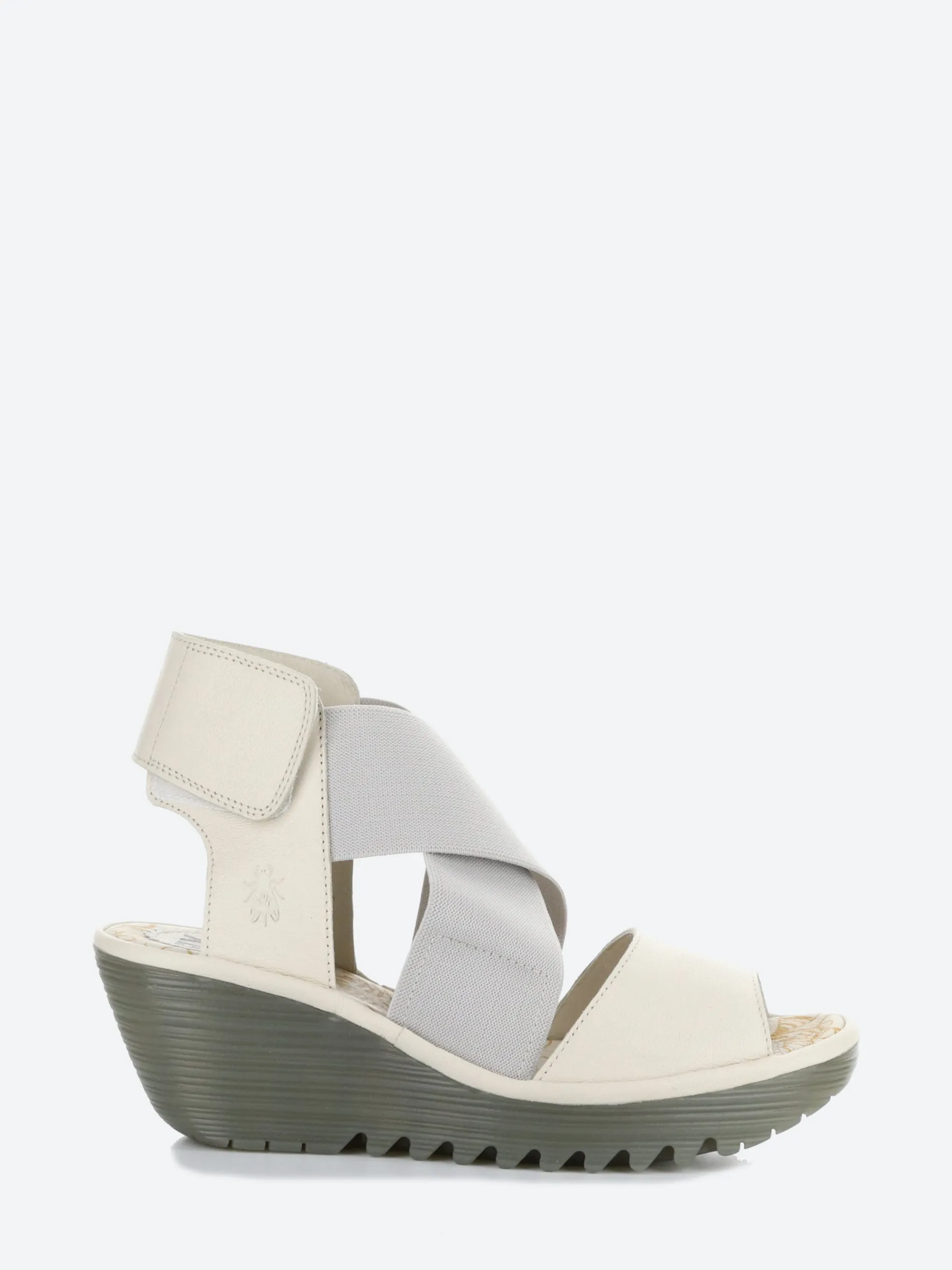 Fly London stylish cupido round toe sandals with wide elastic straps for an adjustable fit.