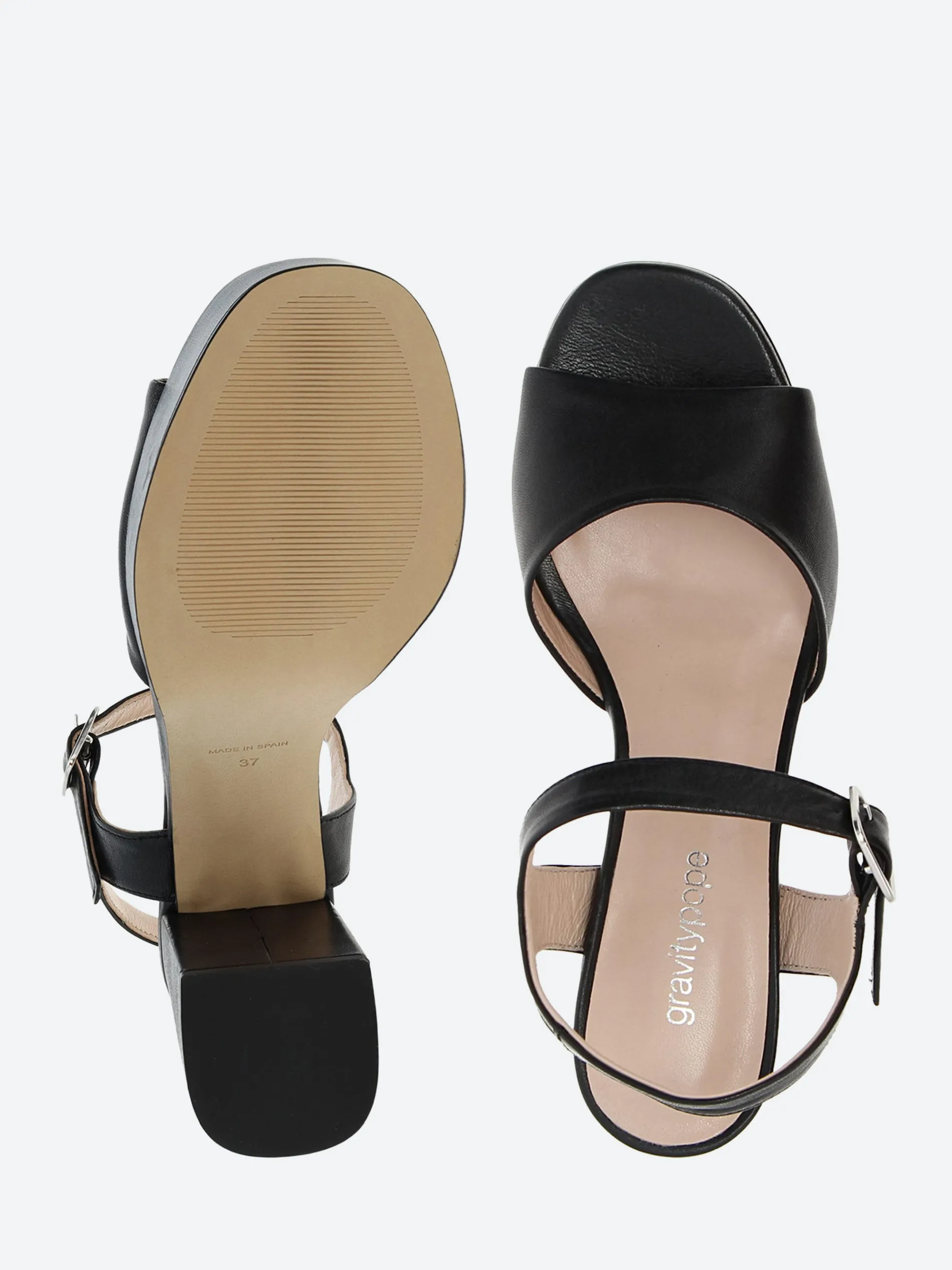 The gravitypope Zeal sandal combines retro appeal with modern design, featuring a chunky heel and platform base for added height and comfort. The Y-strap with buckle closure ensures a secure fit, while the curved leather strap across the vamp adds a stylish touch. Designed as a slip-on style for easy wear, the sandal is finished with a metallic embossed logo at the footbed, adding a touch of luxury to this versatile and fashionable piece.