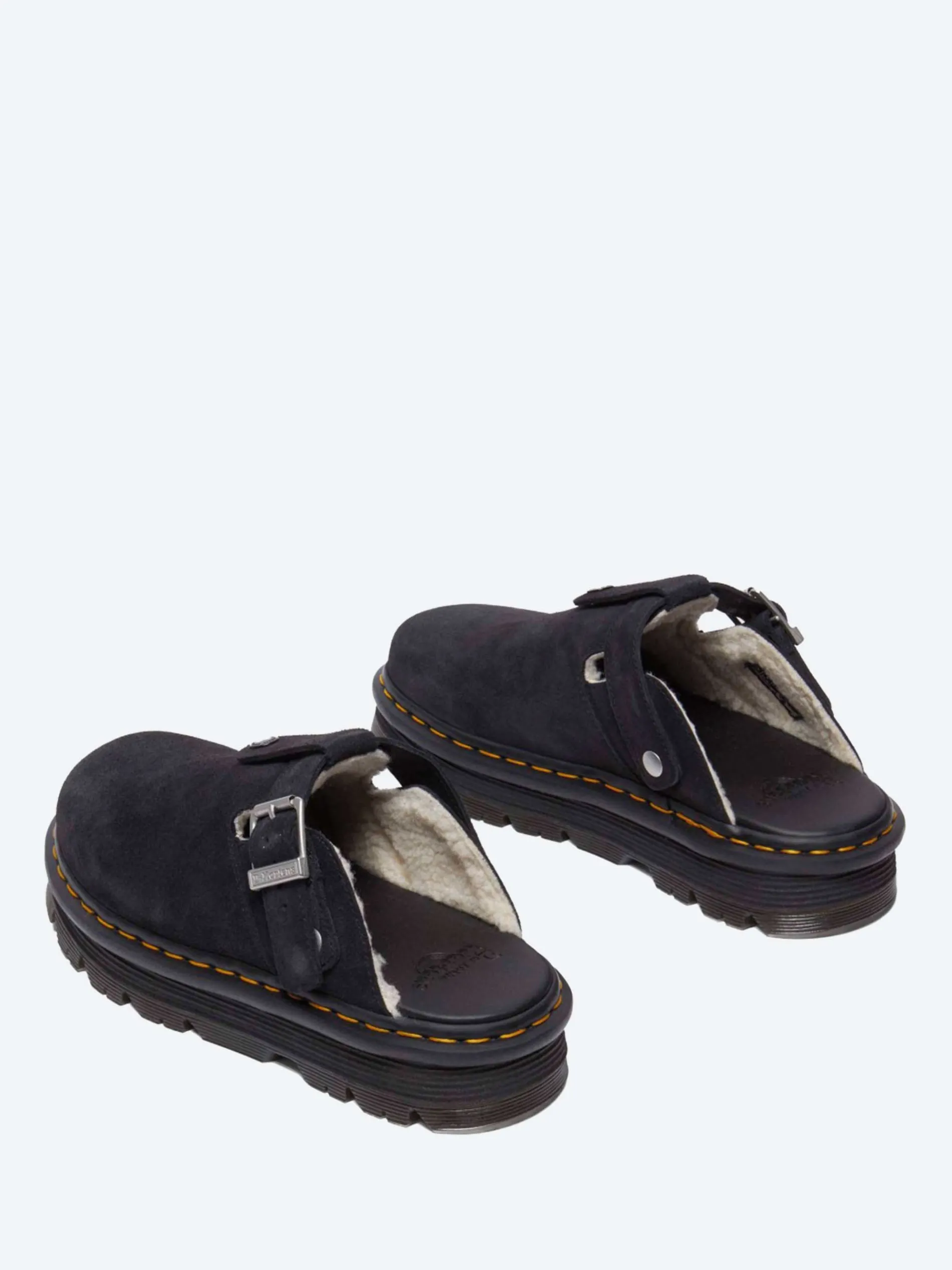 Zebzag mule with a Borg fleece warm lining, rebuilt in rugged dark brown Bronx suede with contrasting fleece linings.