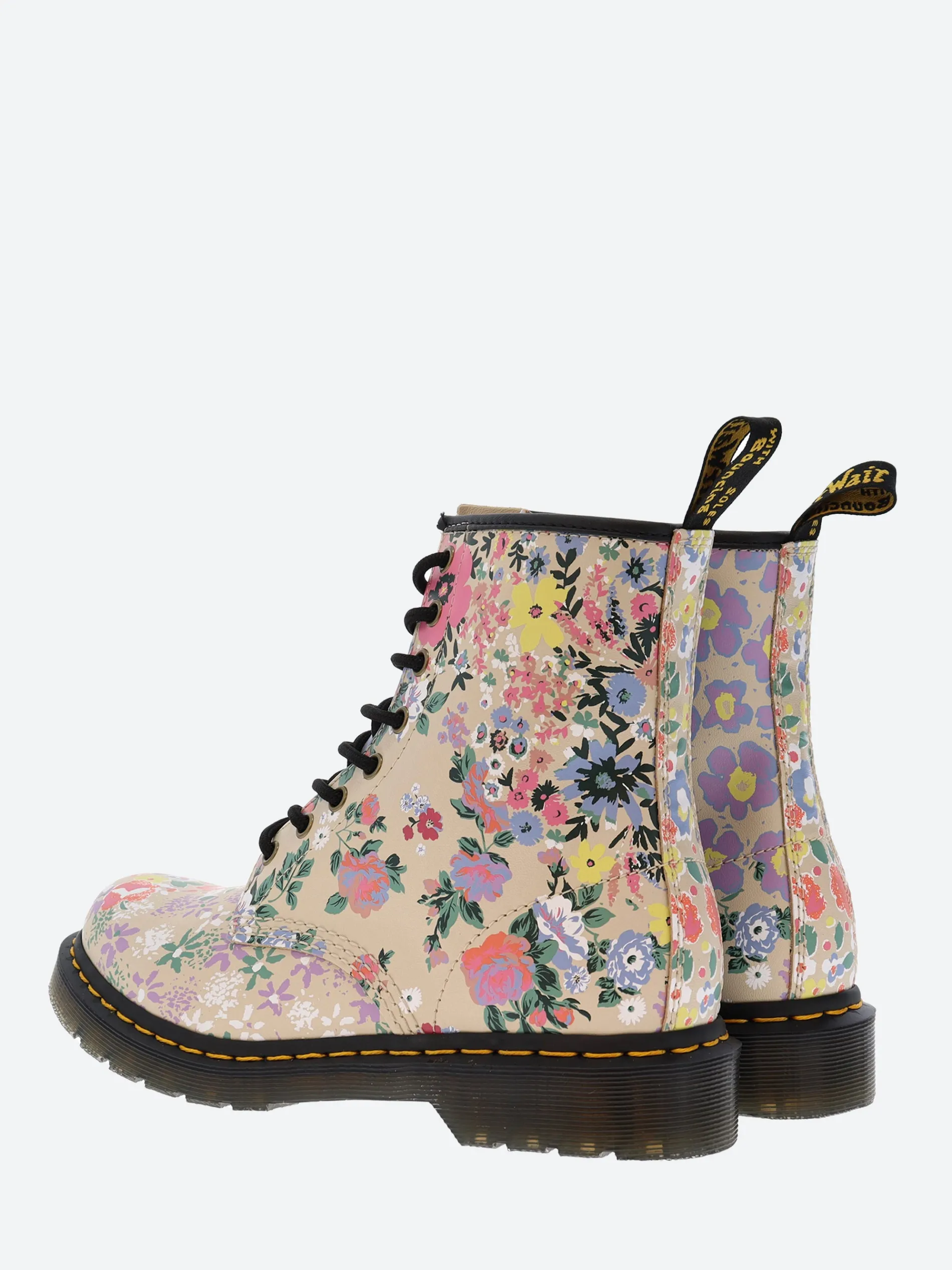 Dr. Martens recognizable 1460 boot with a bright floral print. Built from Smooth leather, that’s durable and stiff to start.