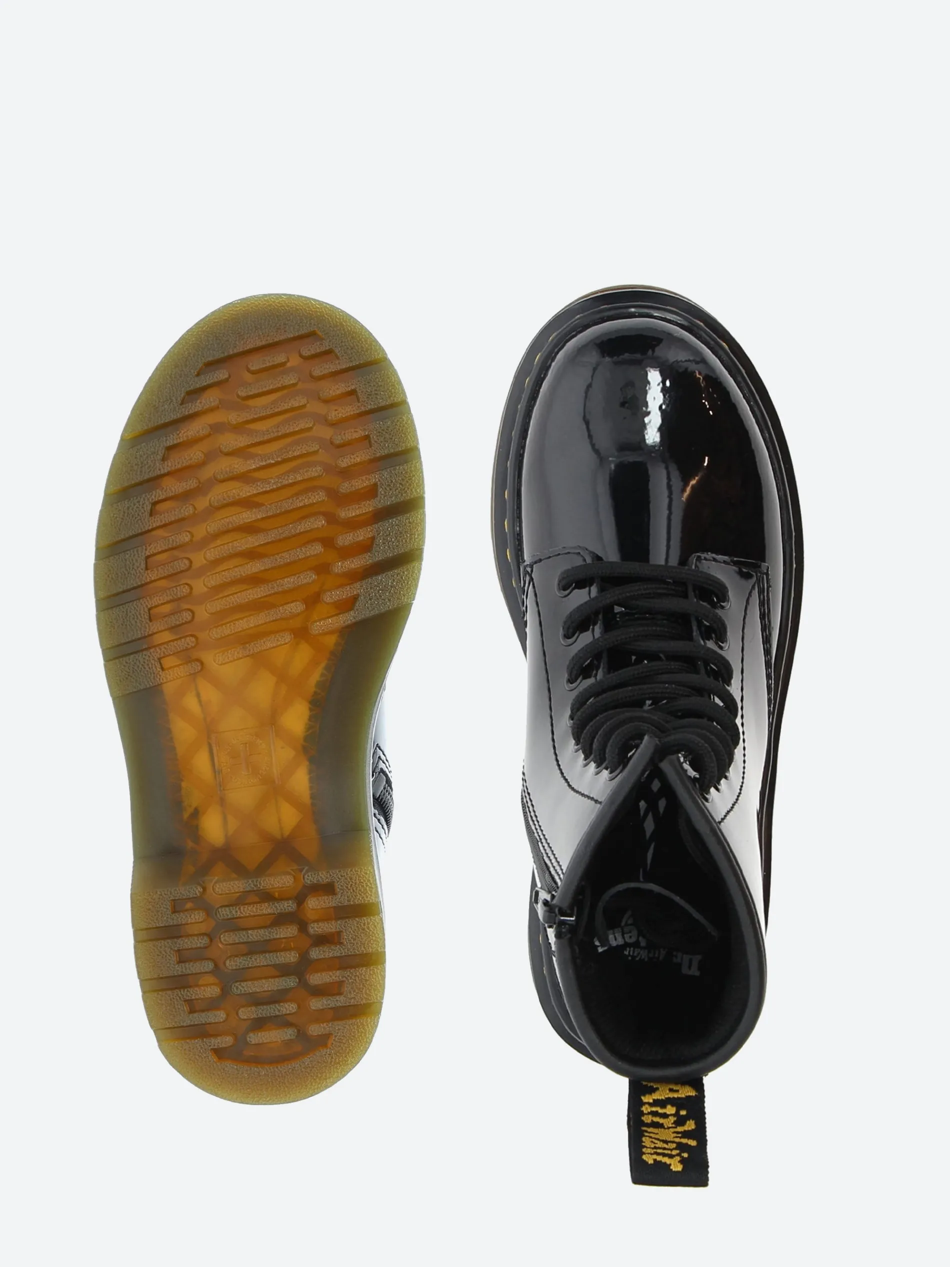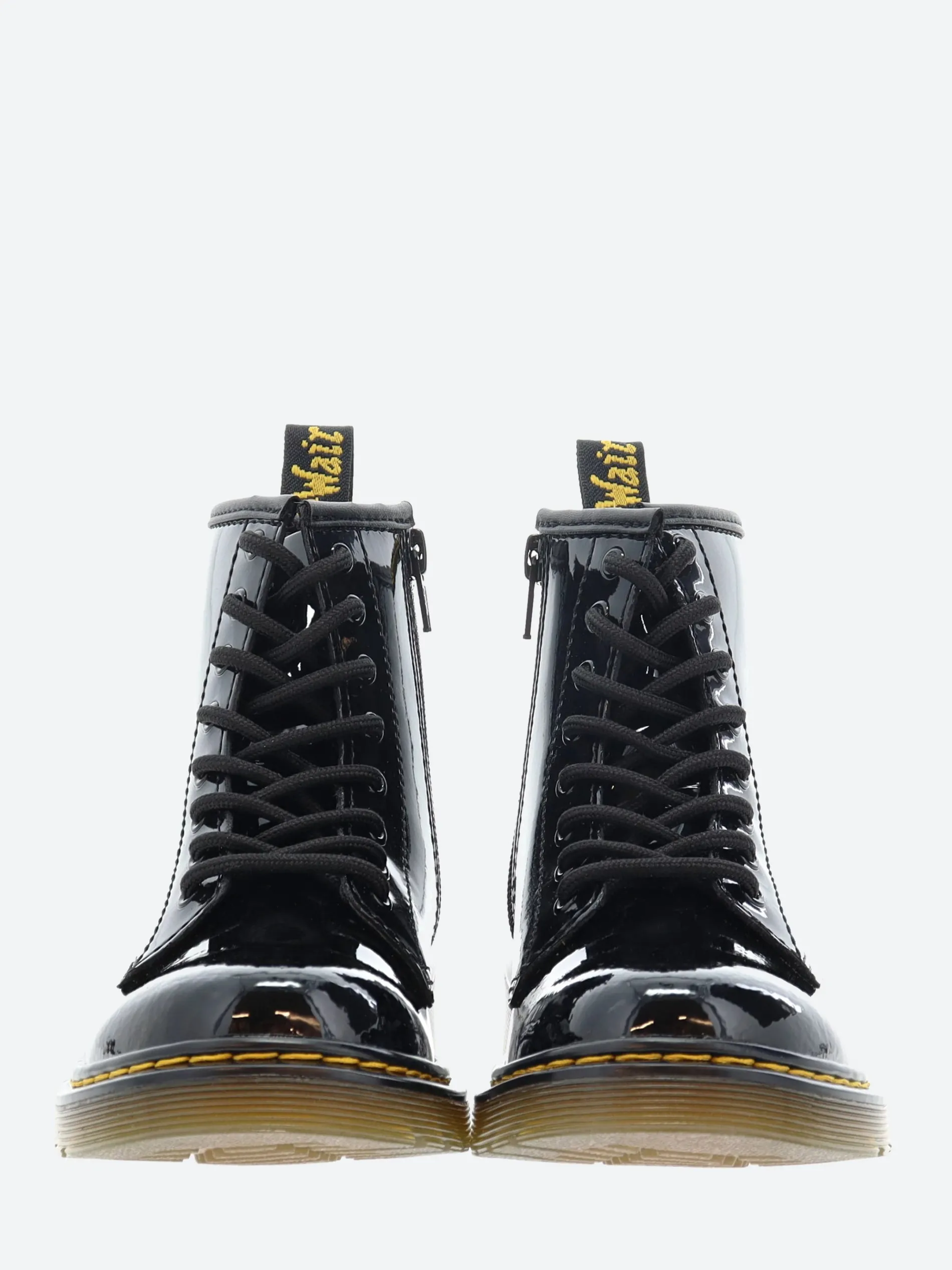 A junior-sized reproduction of the 1460 8-eye boot, offering a sturdy yet flexible sole combined with soft, Patent Lamper leather. The boot has a side zip, as well as laces, to help get them on and off quickly and easily.