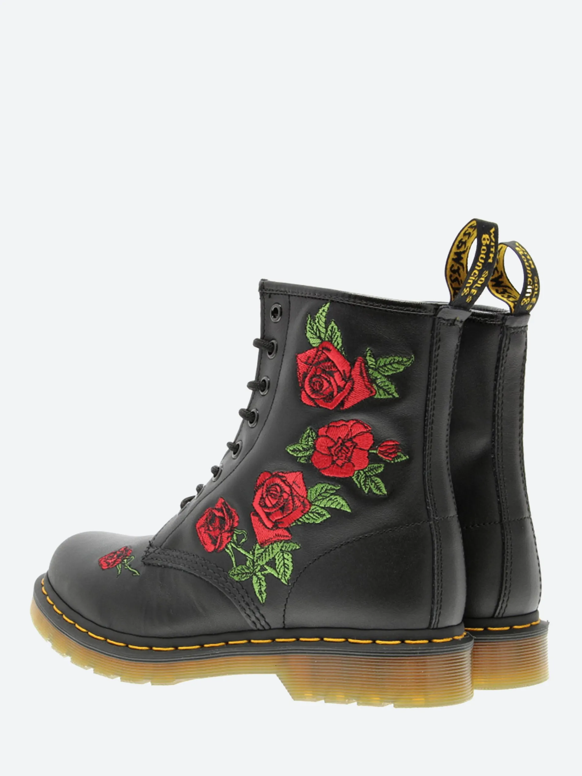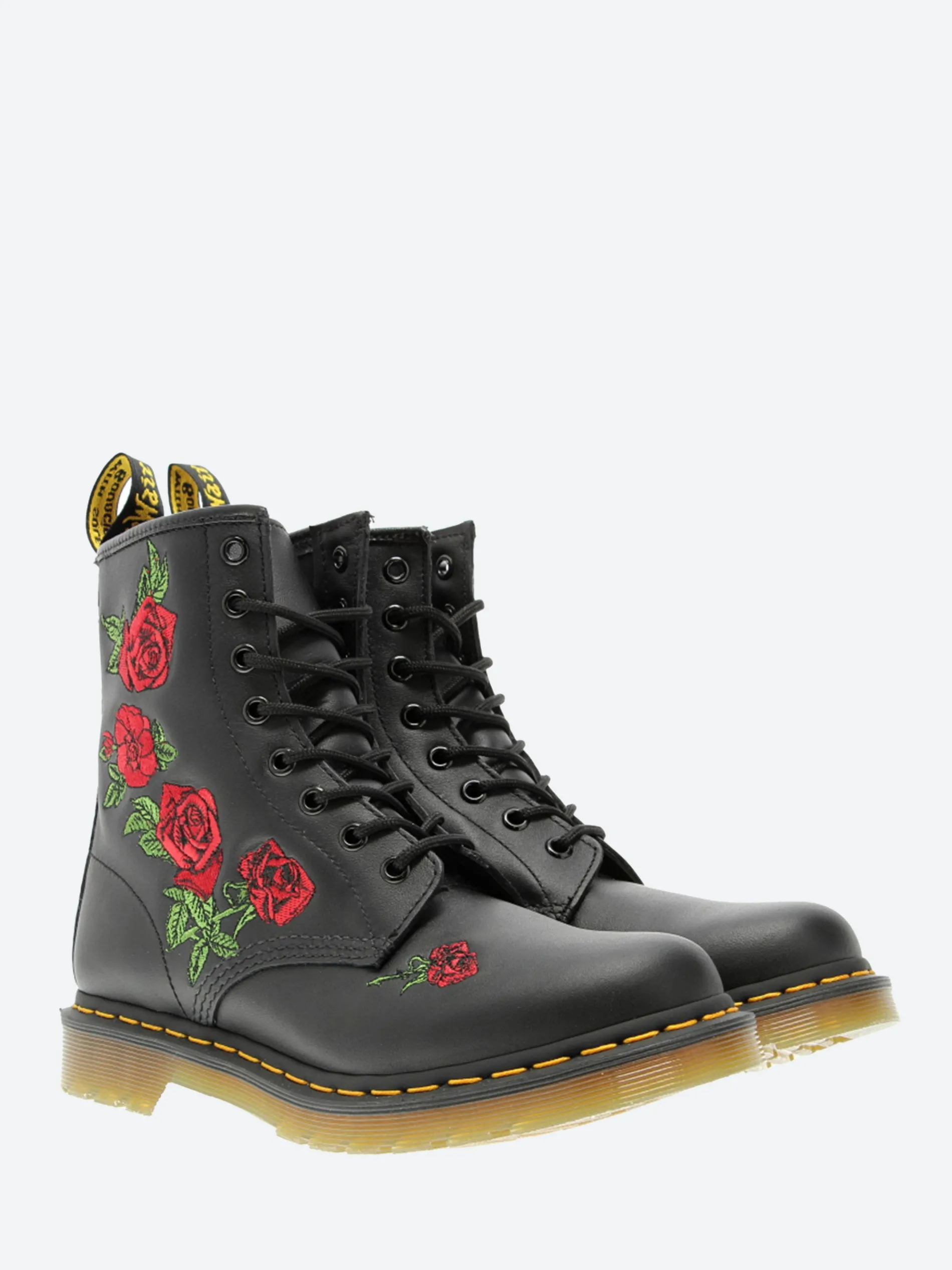 These hard-hitting boots from Docs are sprinkled with pastel embroidered flowers down the side of the boot. Detailed with brushed eyelets, the 8-eye boots have all the unmistakable markings.