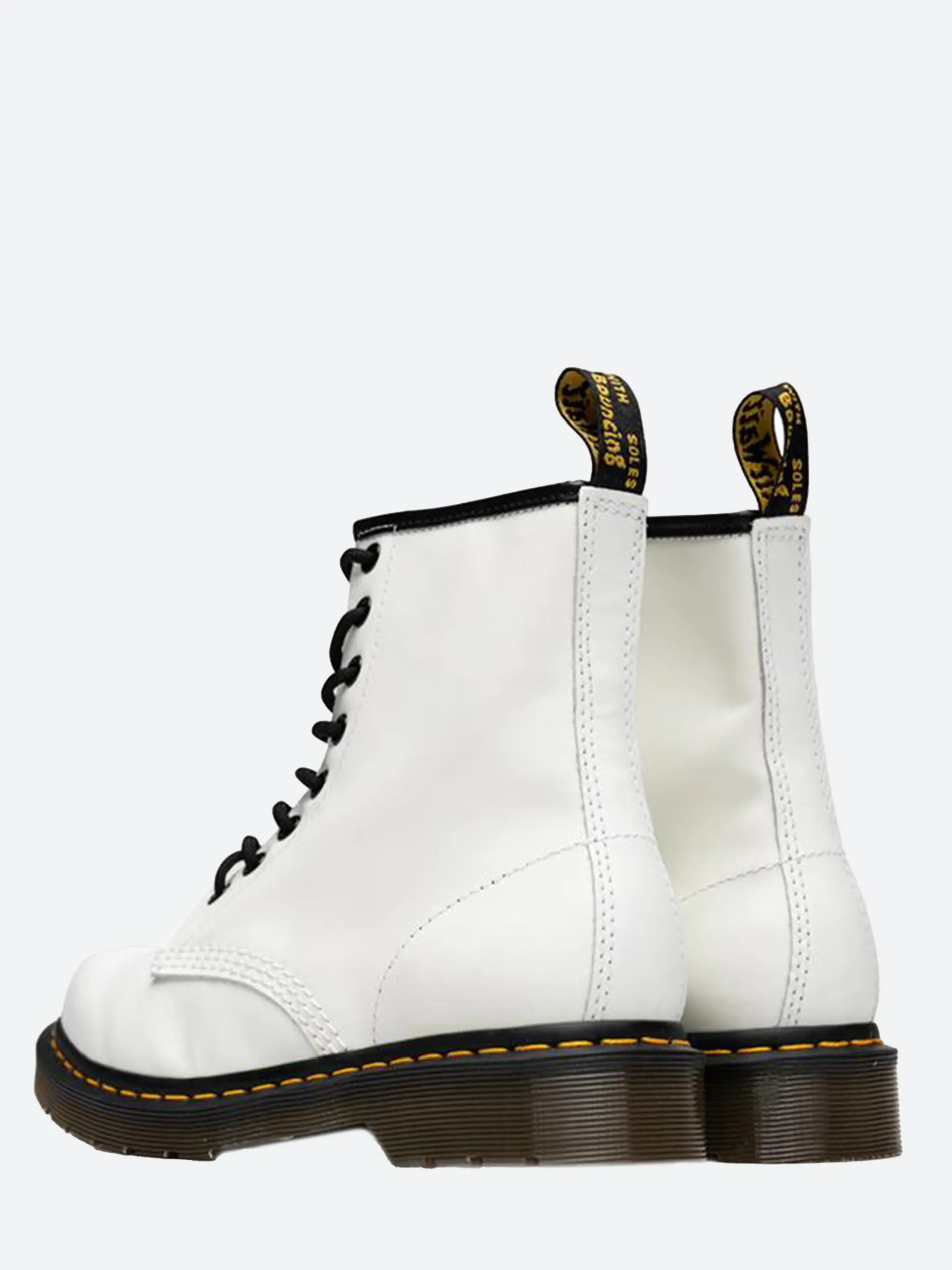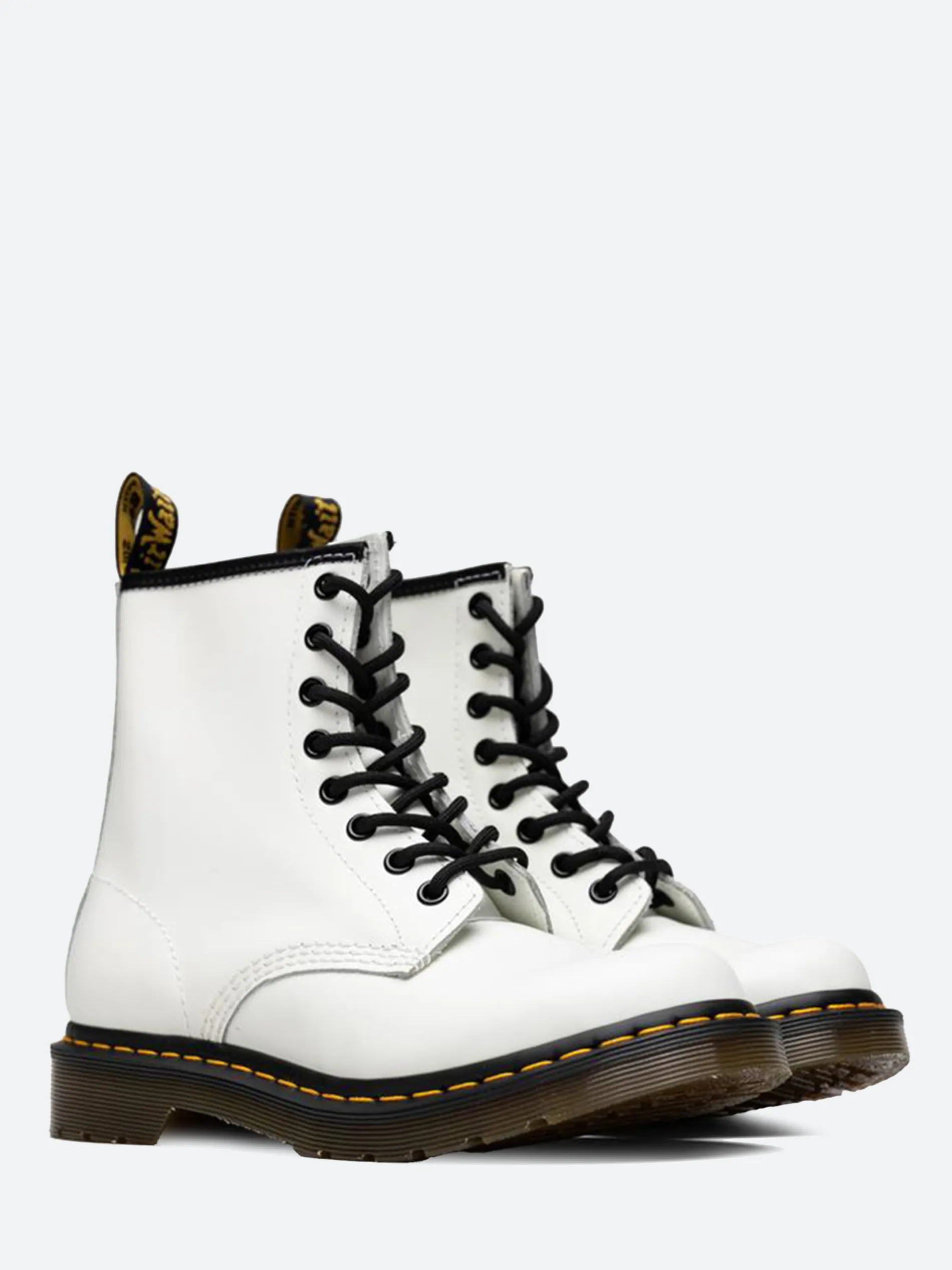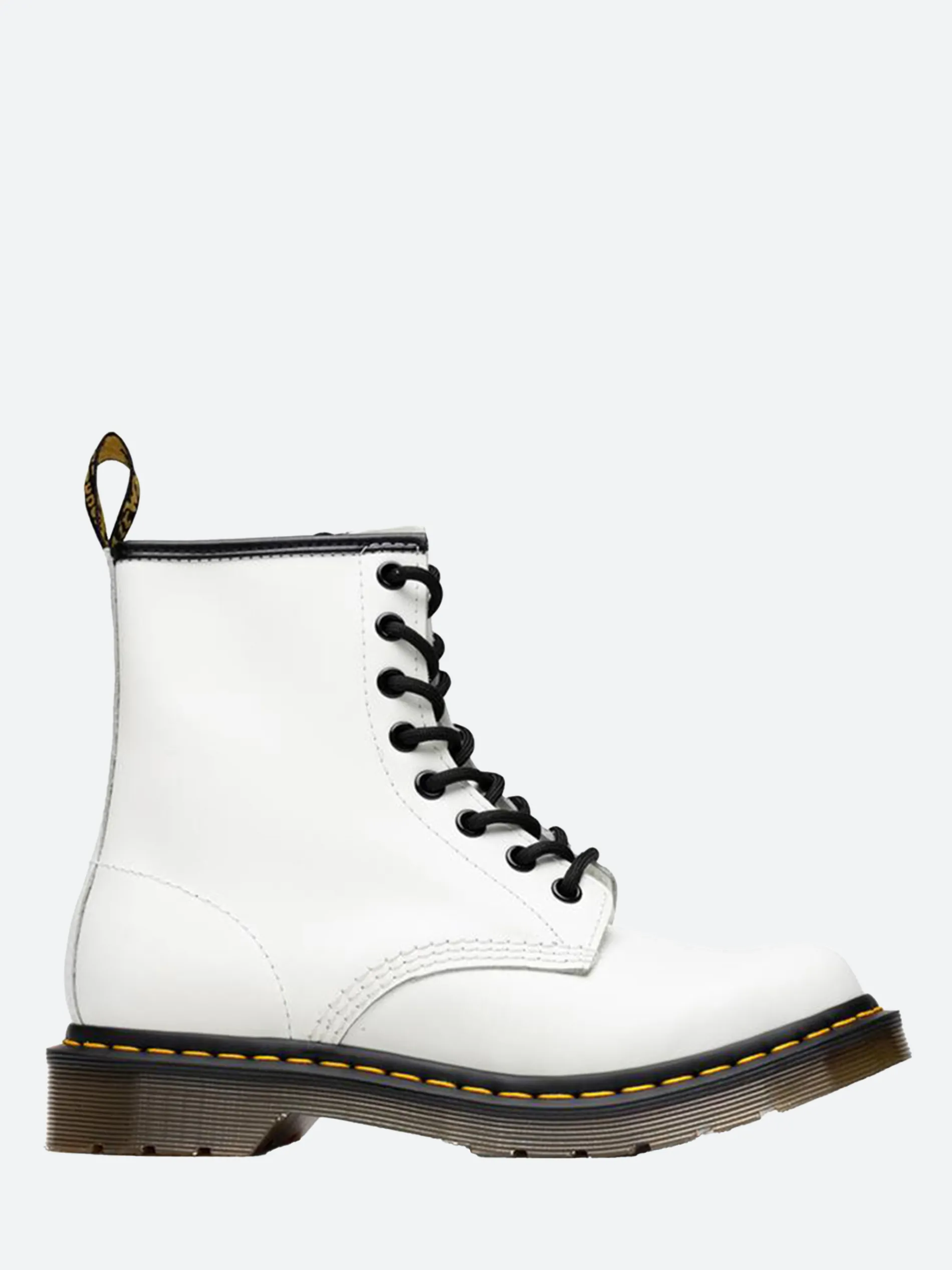 Dr. Martens high-shine Patent Lamper 1460 boot stays true to its Original construction: yellow welt stitching, a scripted AirWair heel loop and a tough air-cushioned sole.