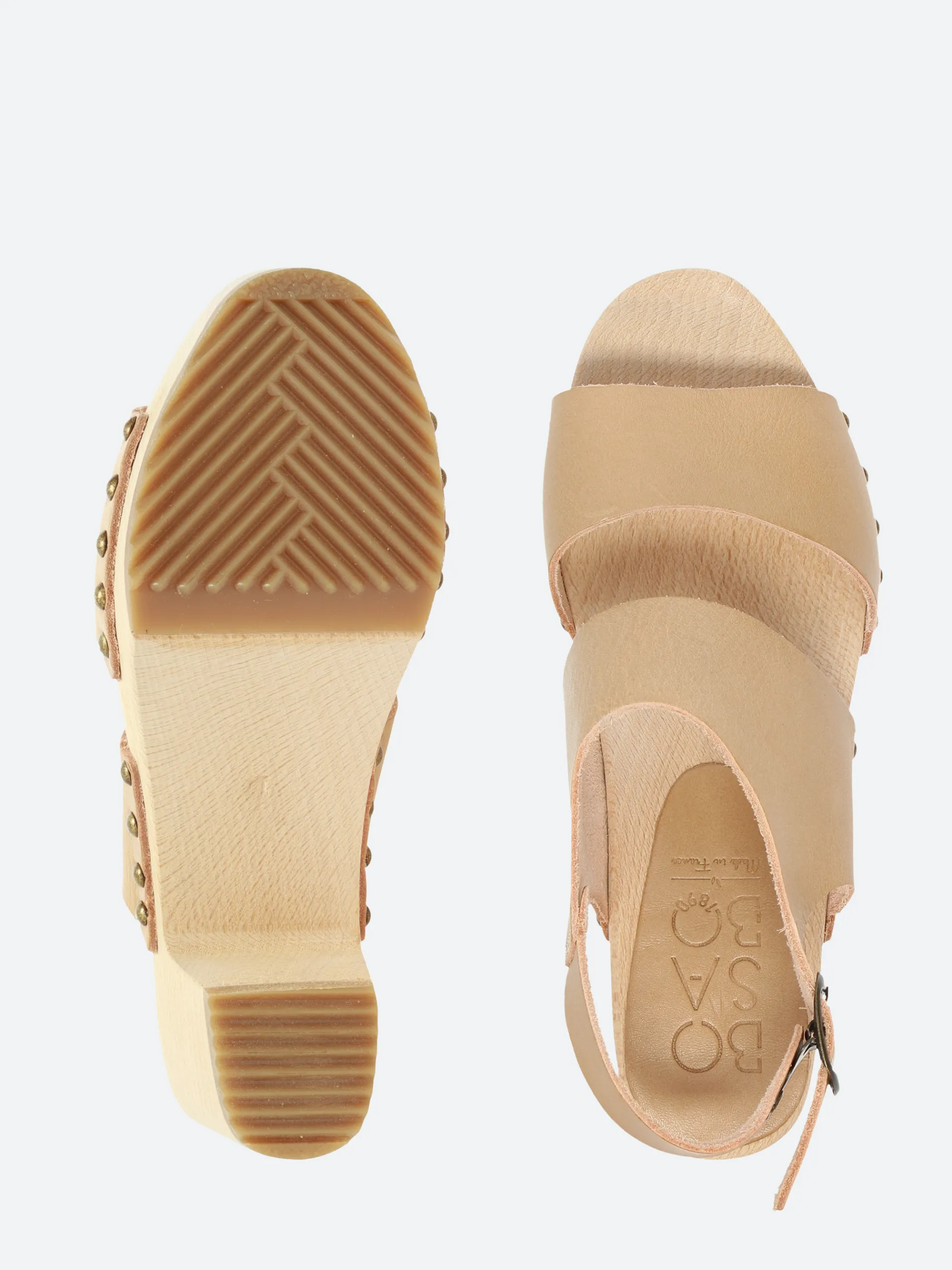 Outsole: wood with rubber inserts