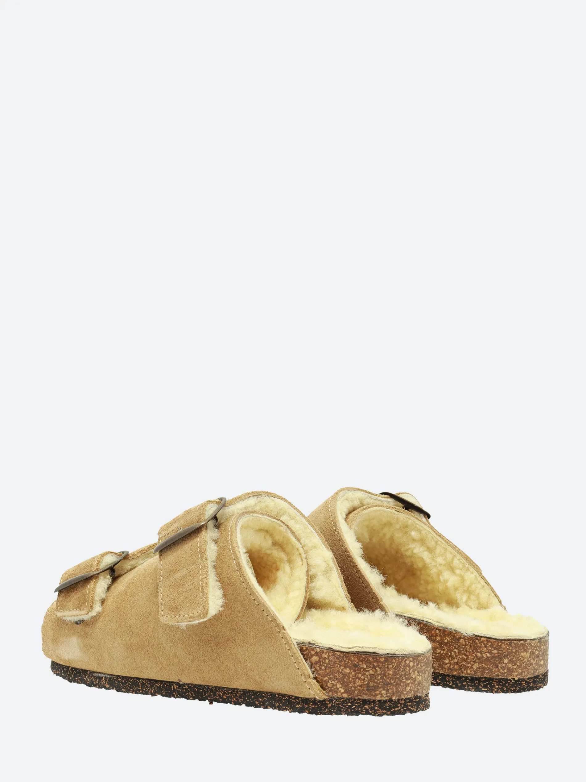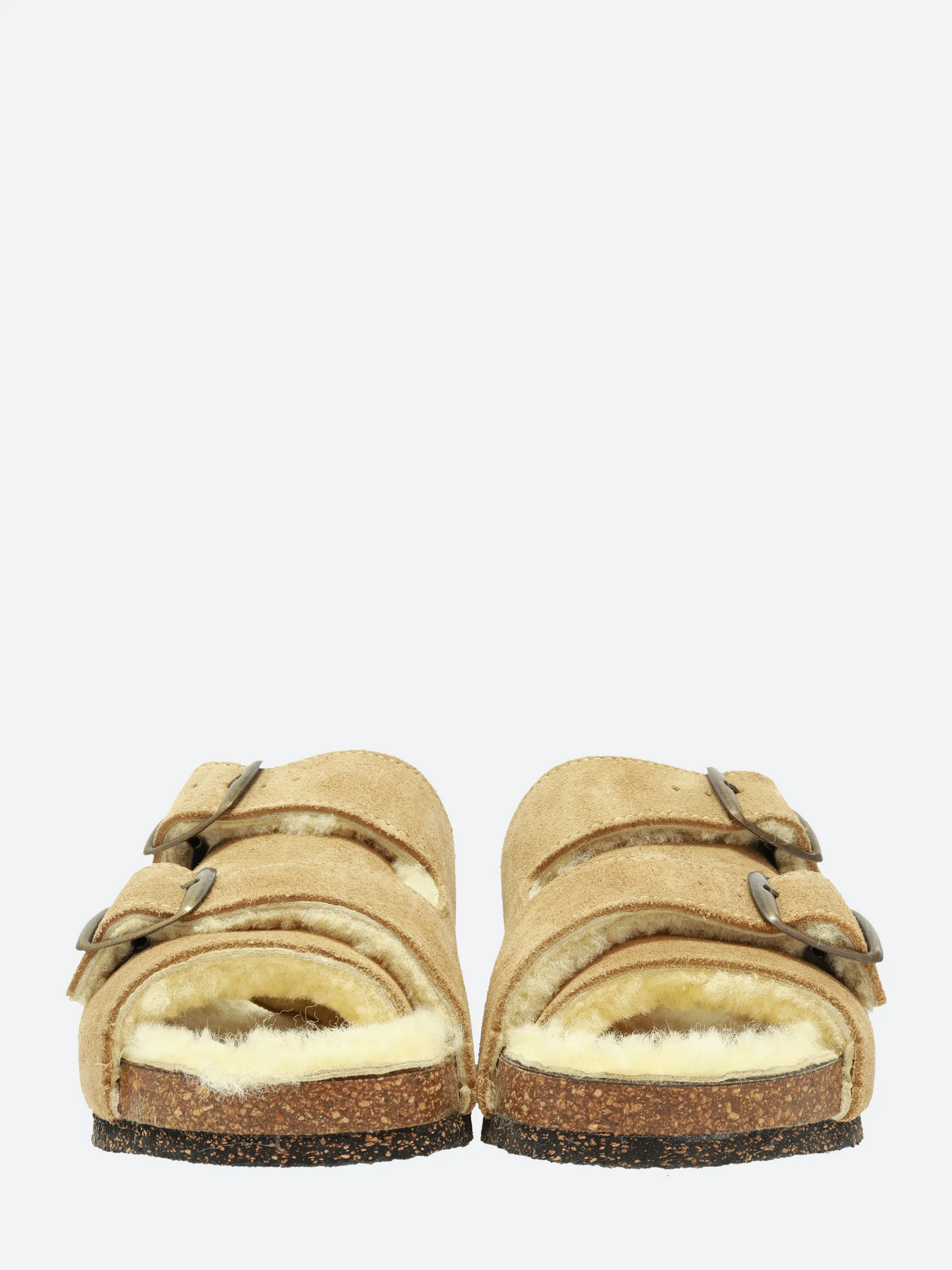 Sandal with nubuck leather upper and sheepskin leather insole.