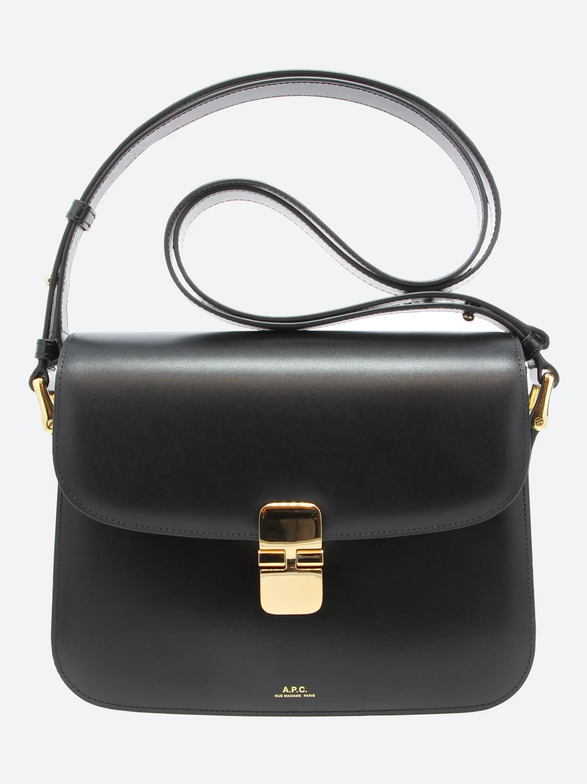 A.P.C. Grace bag with a streamlined trapezoidal silhouette and gold-tone hardware.