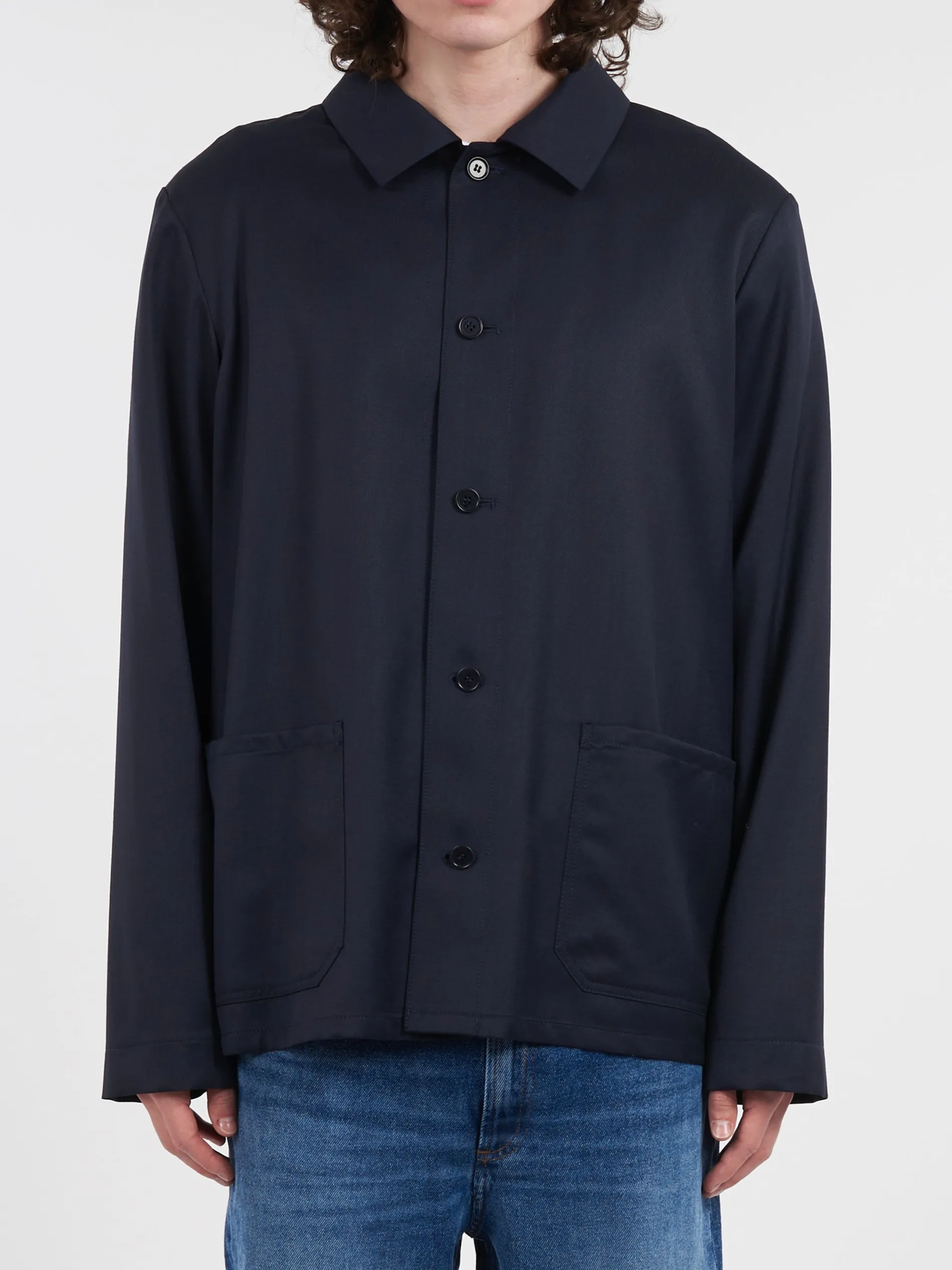 This jacket is constructed from neatly cut wool, resulting in a straight fit. Its versatility allows for effortless pairing with any outfit.