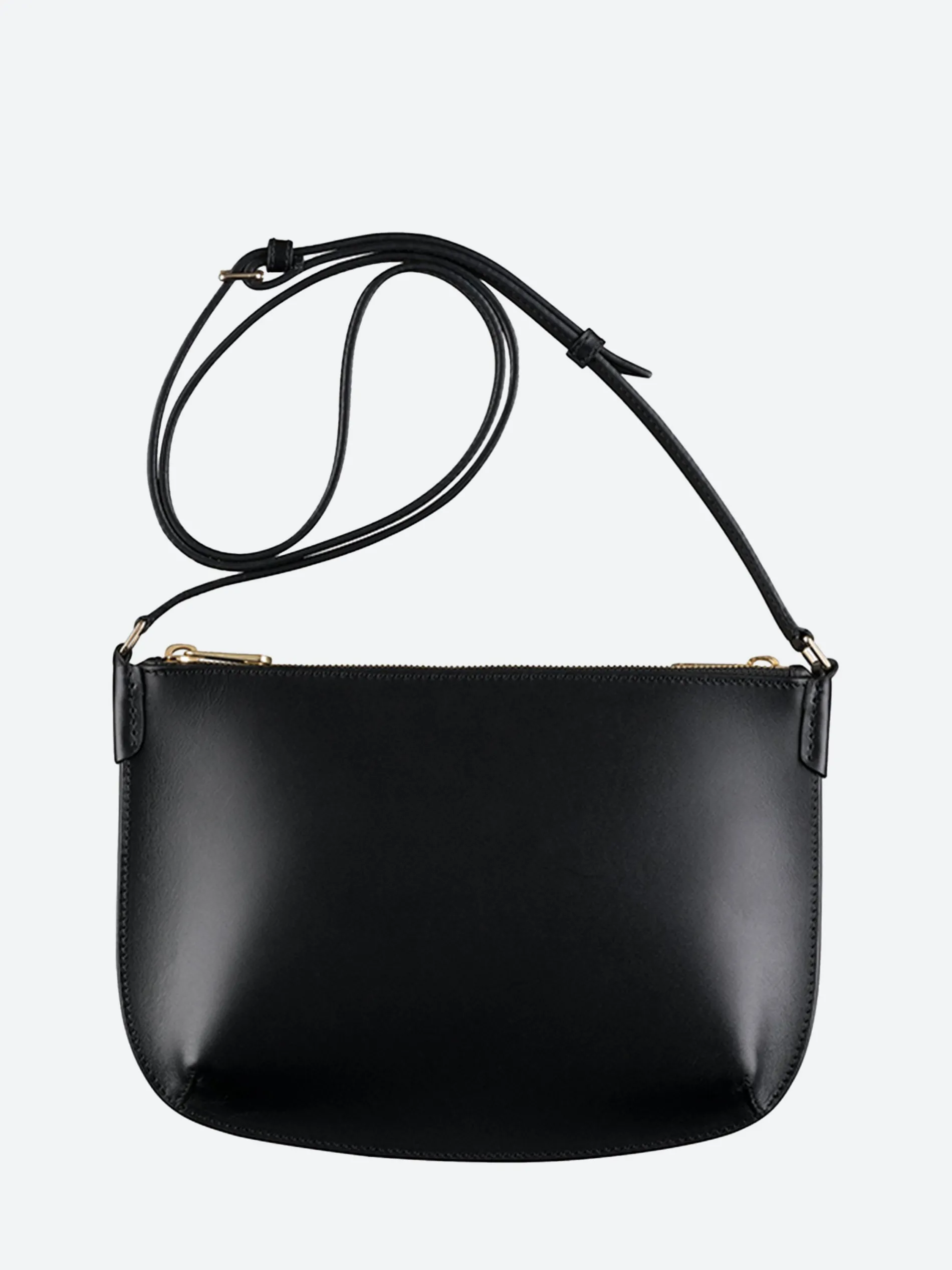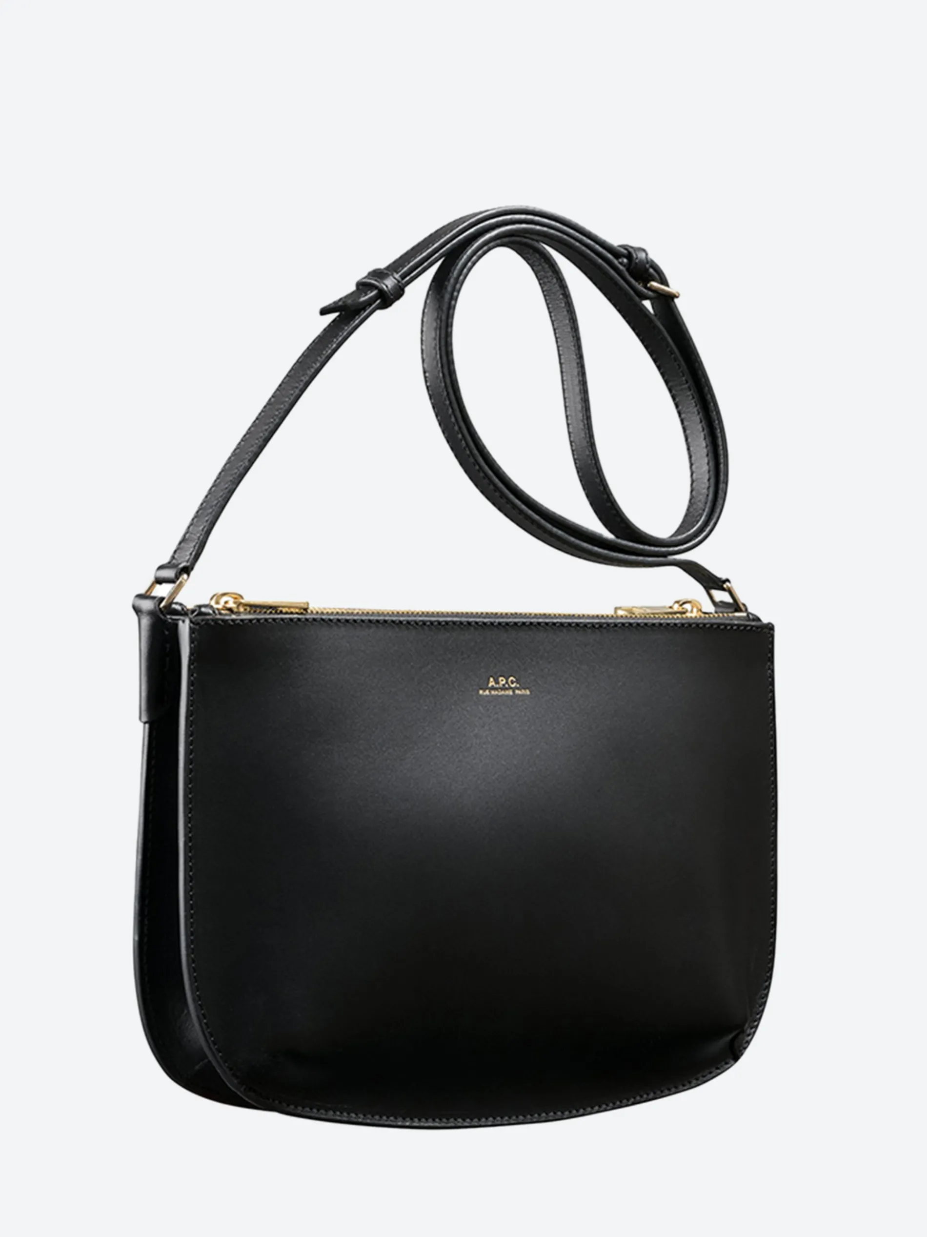 This leather bag has a shoulder strap and the gold ‘A.P.C. Rue Madame’ logo on front.