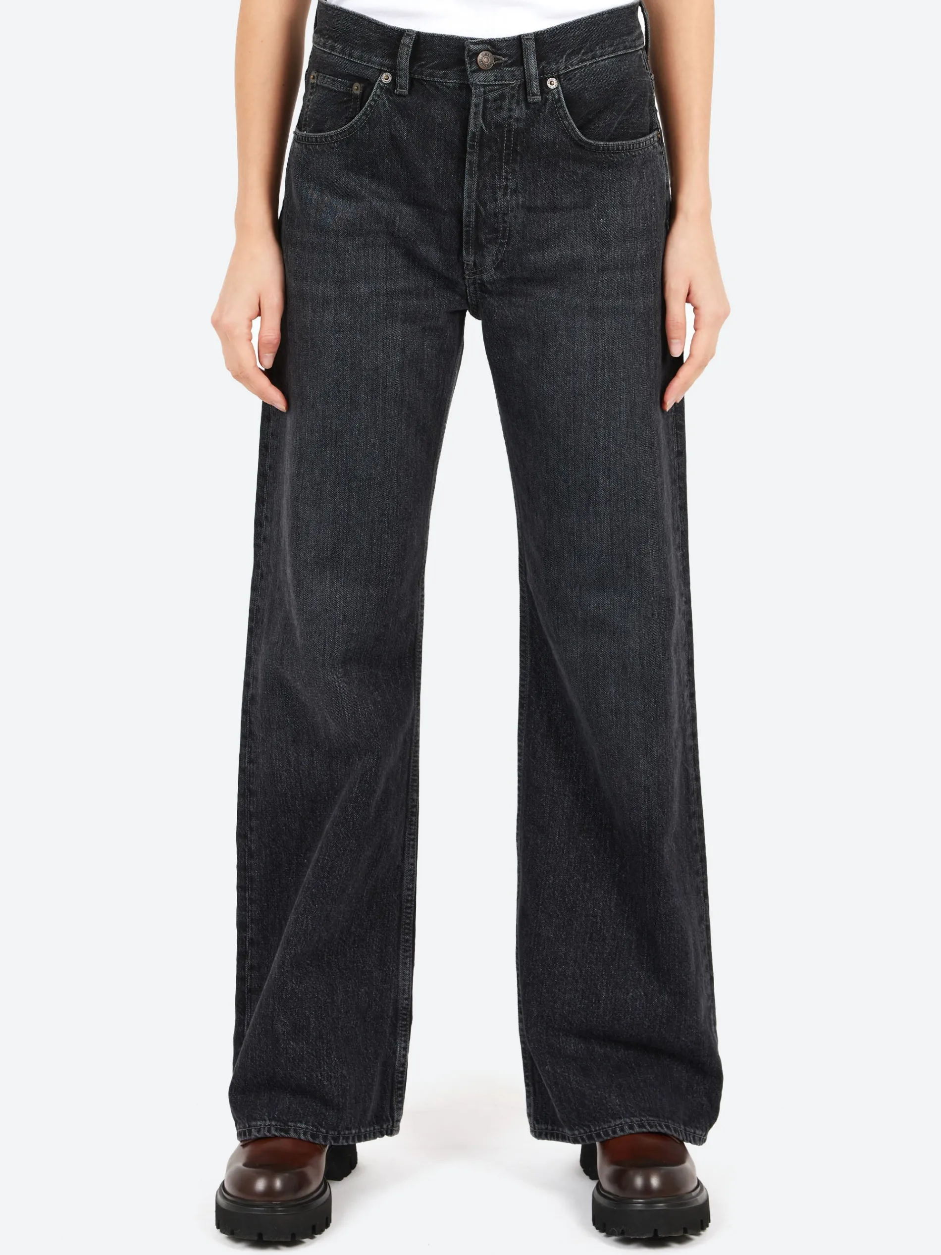 2021 jeans are cut to a loose fit with mid-waist, wide leg and long length. Made from rigid denim in a dark wash.