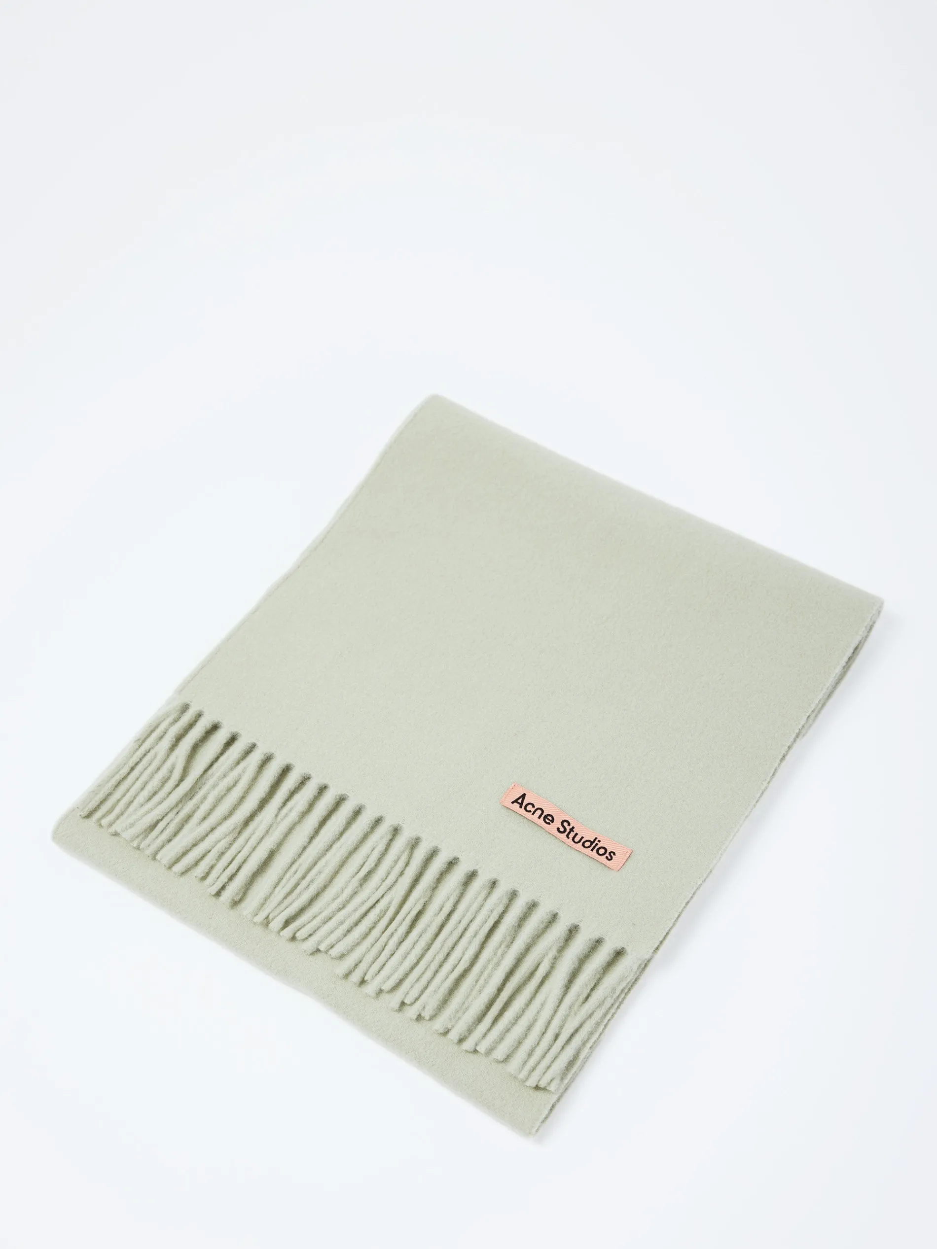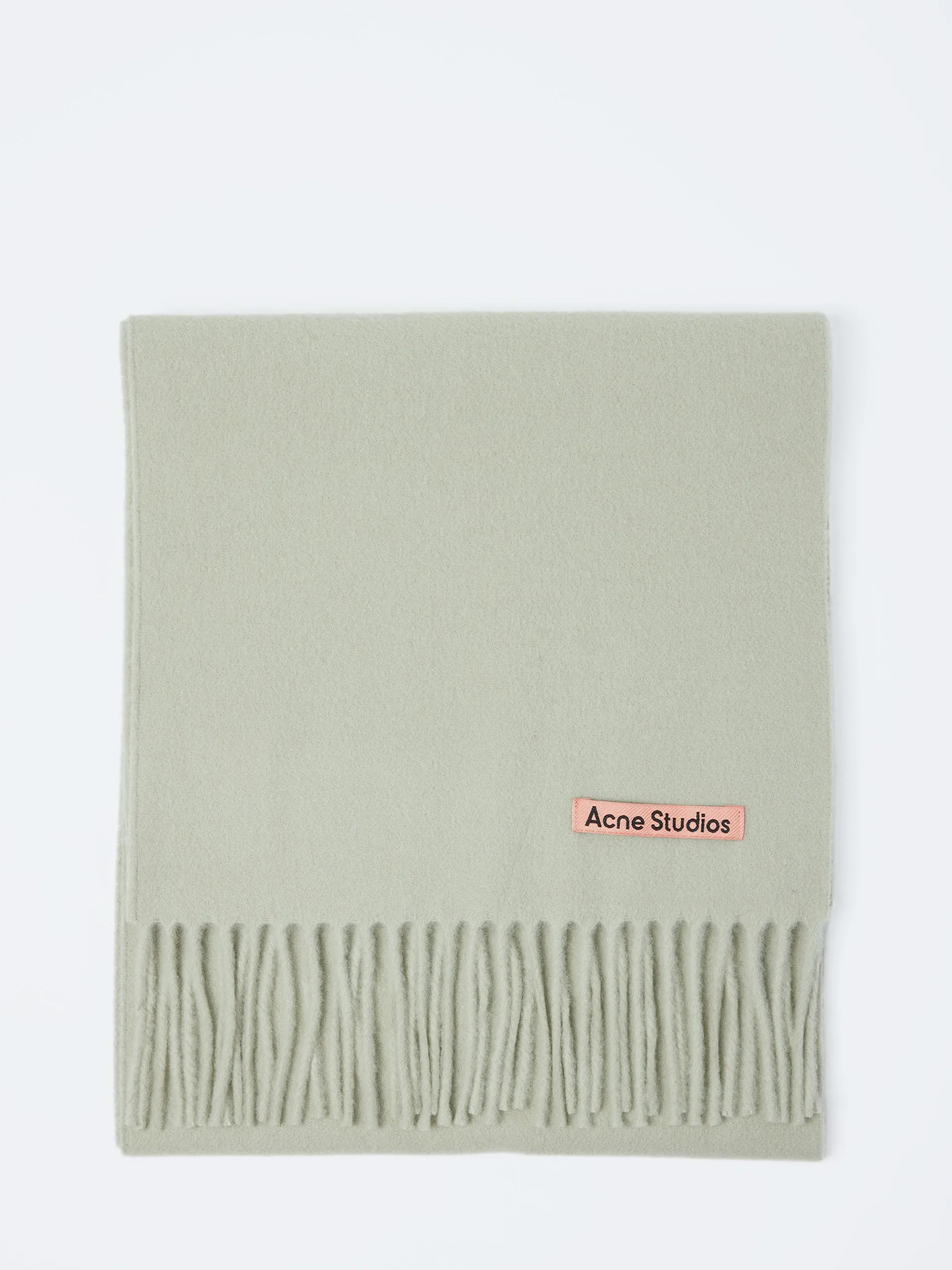Fringed scarf is detailed with a pink Acne Studios label, crafted from midweight wool.