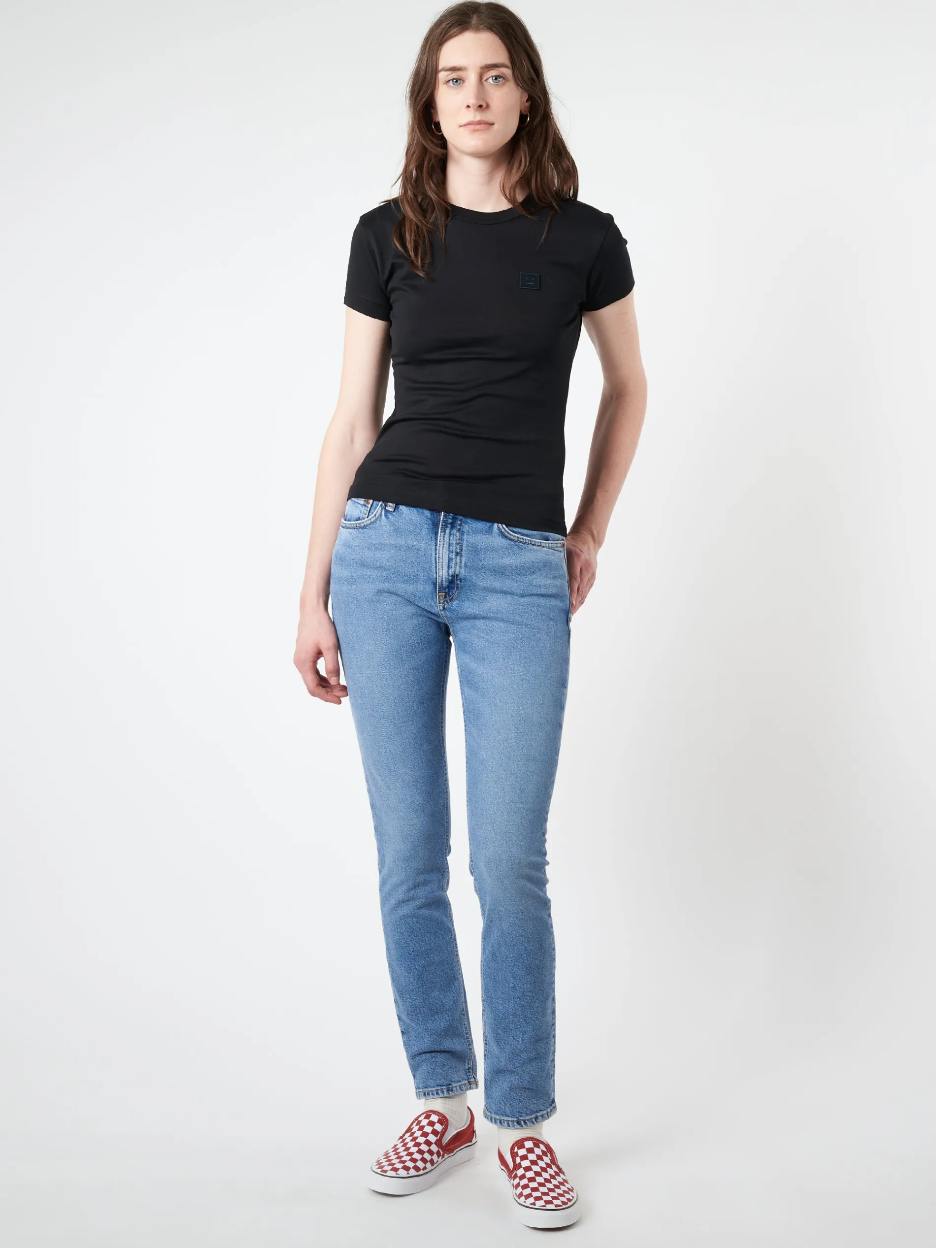 Acne Studios crew neck t-shirt is made from lightweight jersey and a face logo patch.