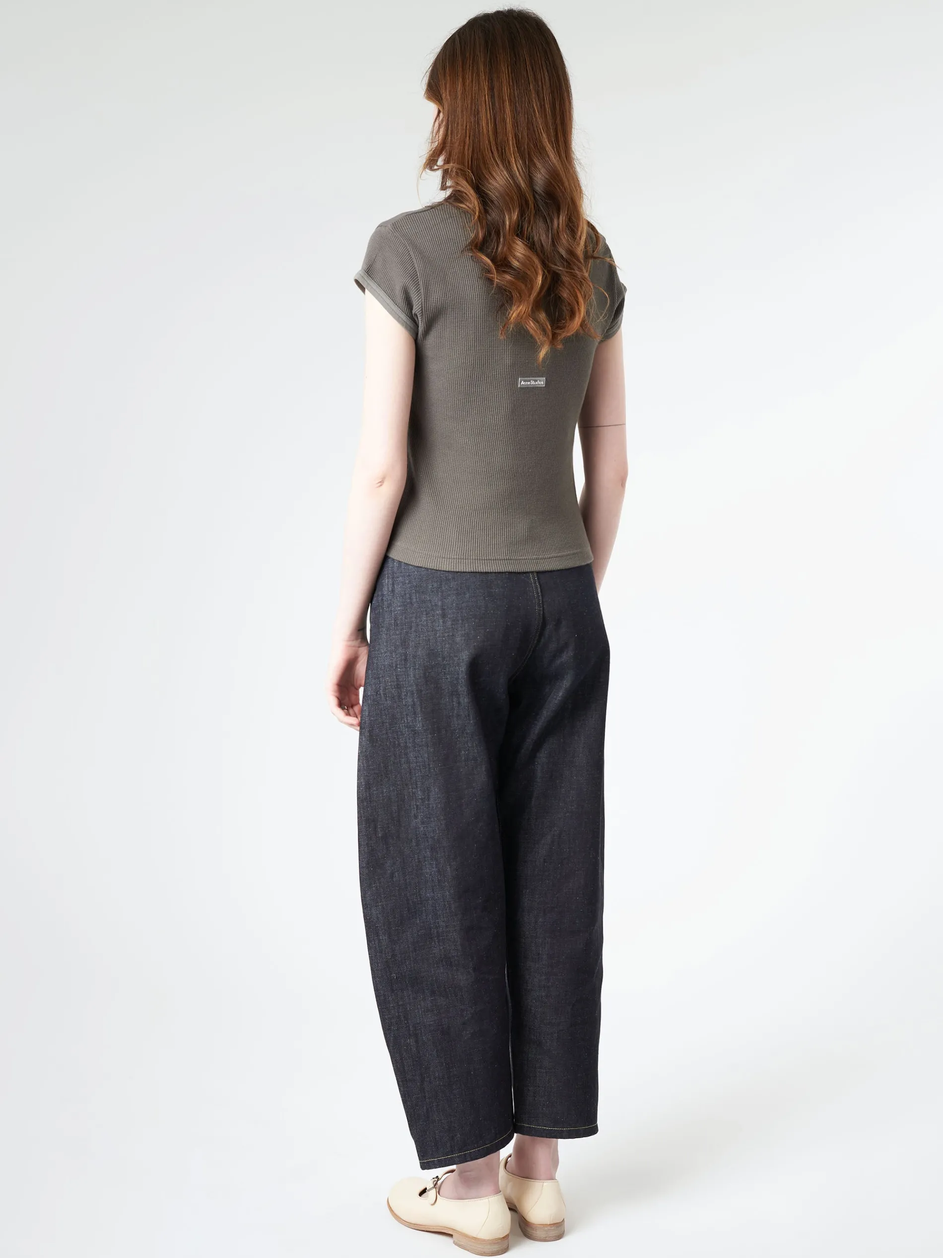 Crew neck t-shirt is cut to a fitted fit and a below waist length. Crafted from soft cotton with a garment-dyed finish and contrast binding.