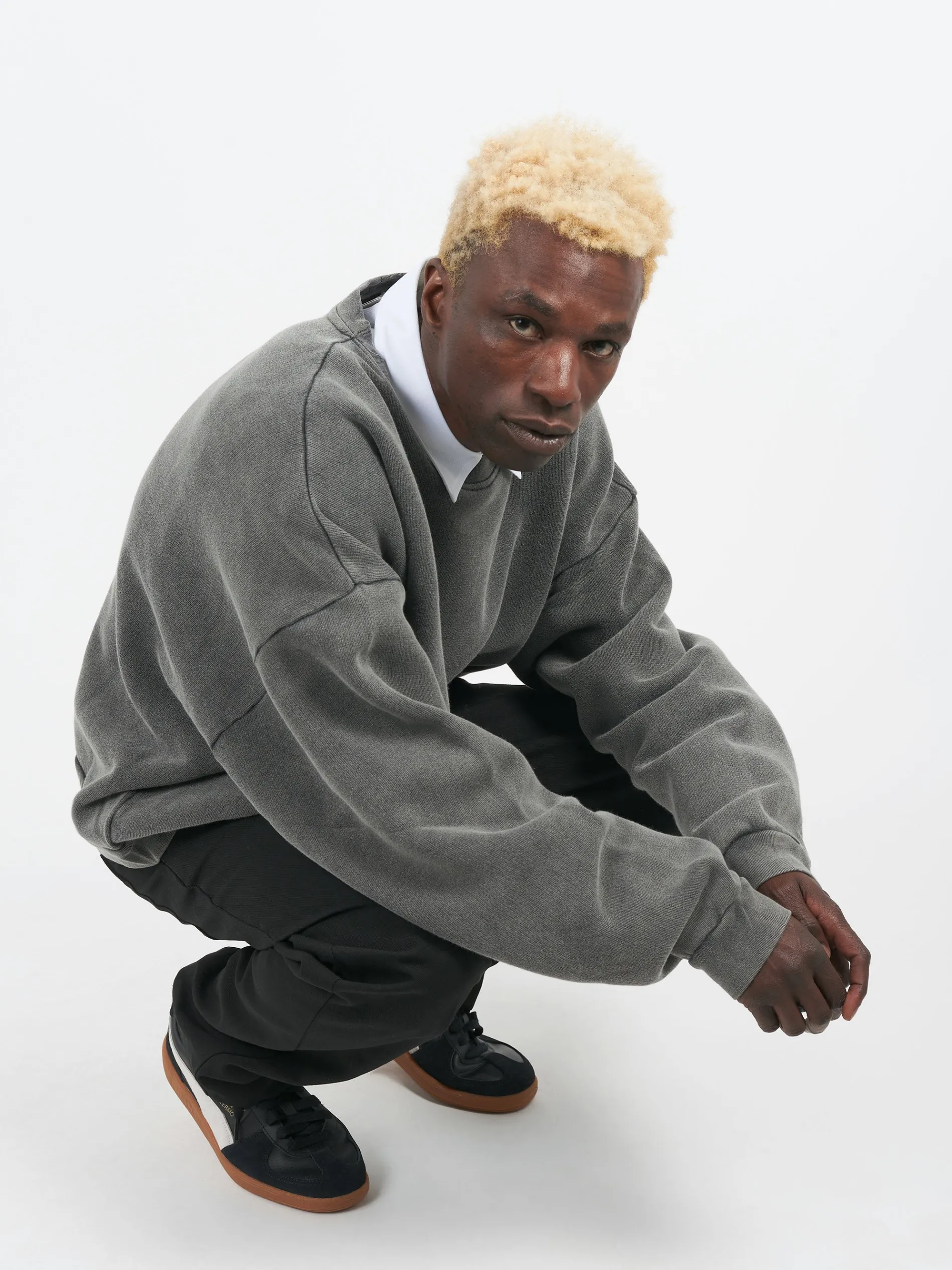 Crew neck sweater features an Acne Studios logo rubber patch at the center back, crafted from midweight cotton with a garment-dyed finish.