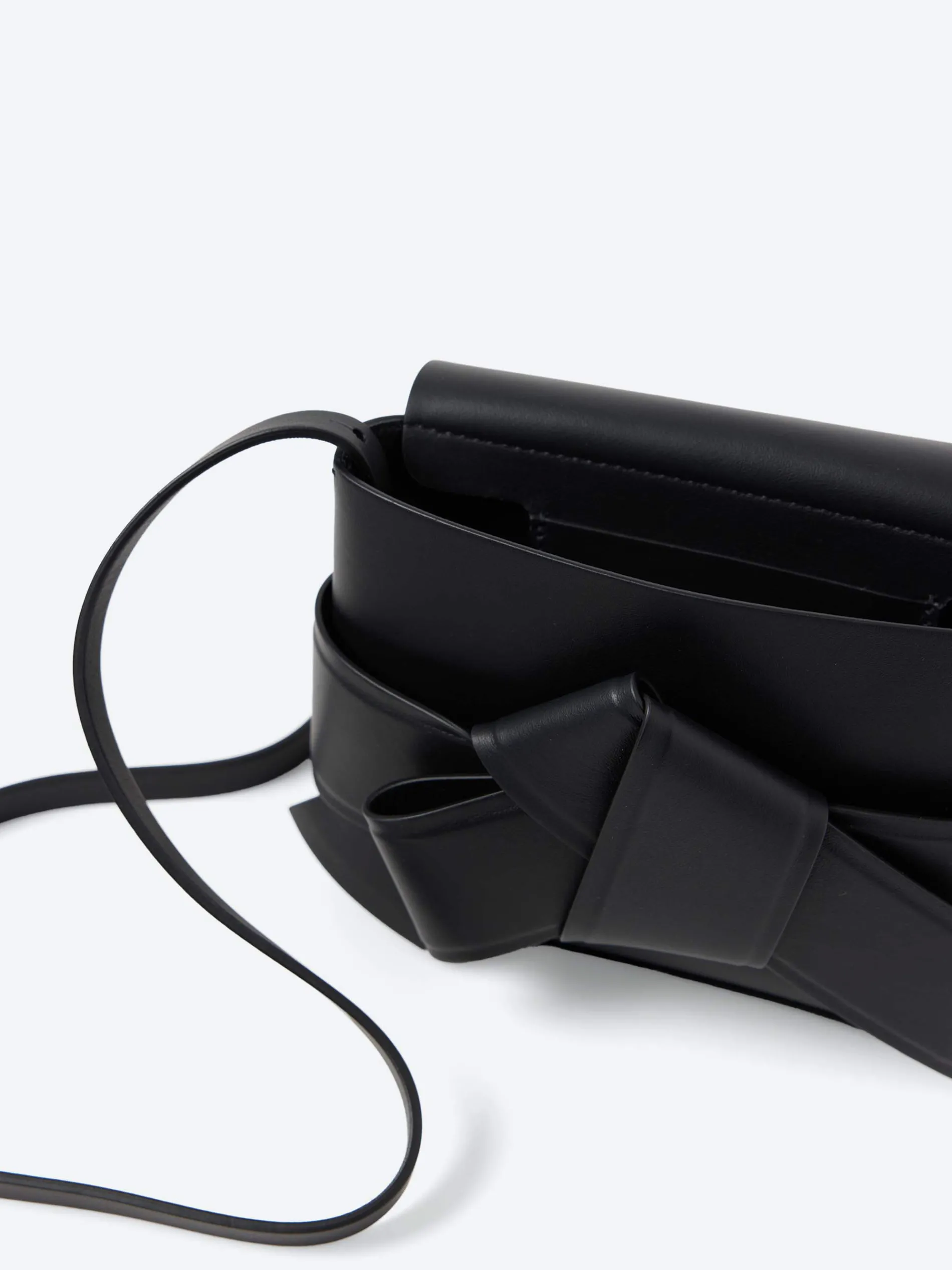Acne Studios Musubi Mini Crossbody Bag is crafted from smooth leather adorned with a twisted musubi knot on the front, inspired by the traditional Japanese obi sashes. Complete with interior card slots and an adjustable crossbody strap.