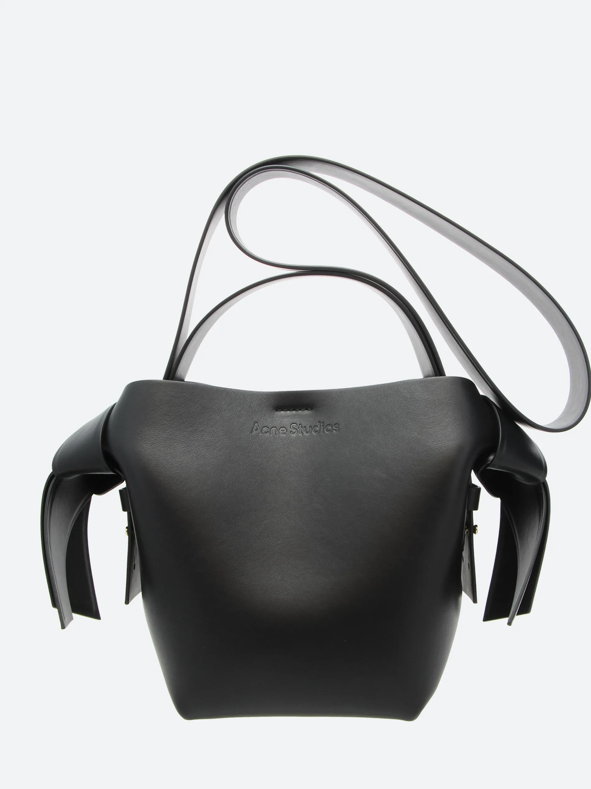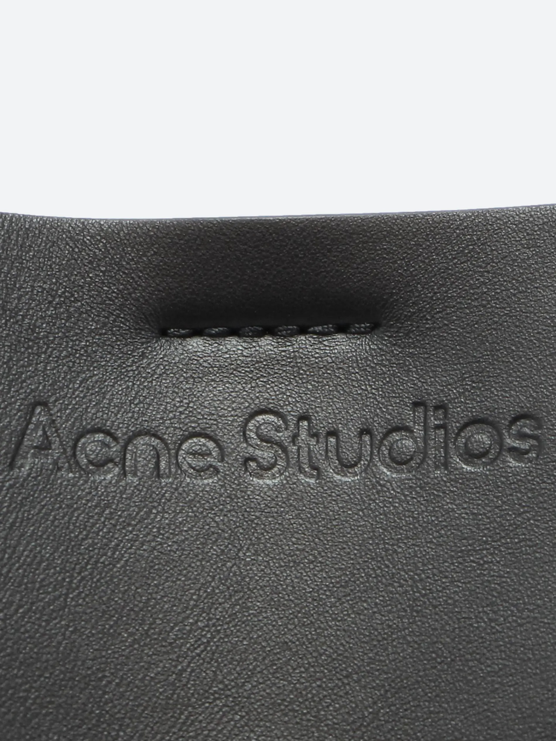 Acne Studios small bag features twisted knots inspired by traditional Japanese obi sashes. It has a debossed logo and snap button closure, which opens to reveal a zipper compartment for storing small essentials.