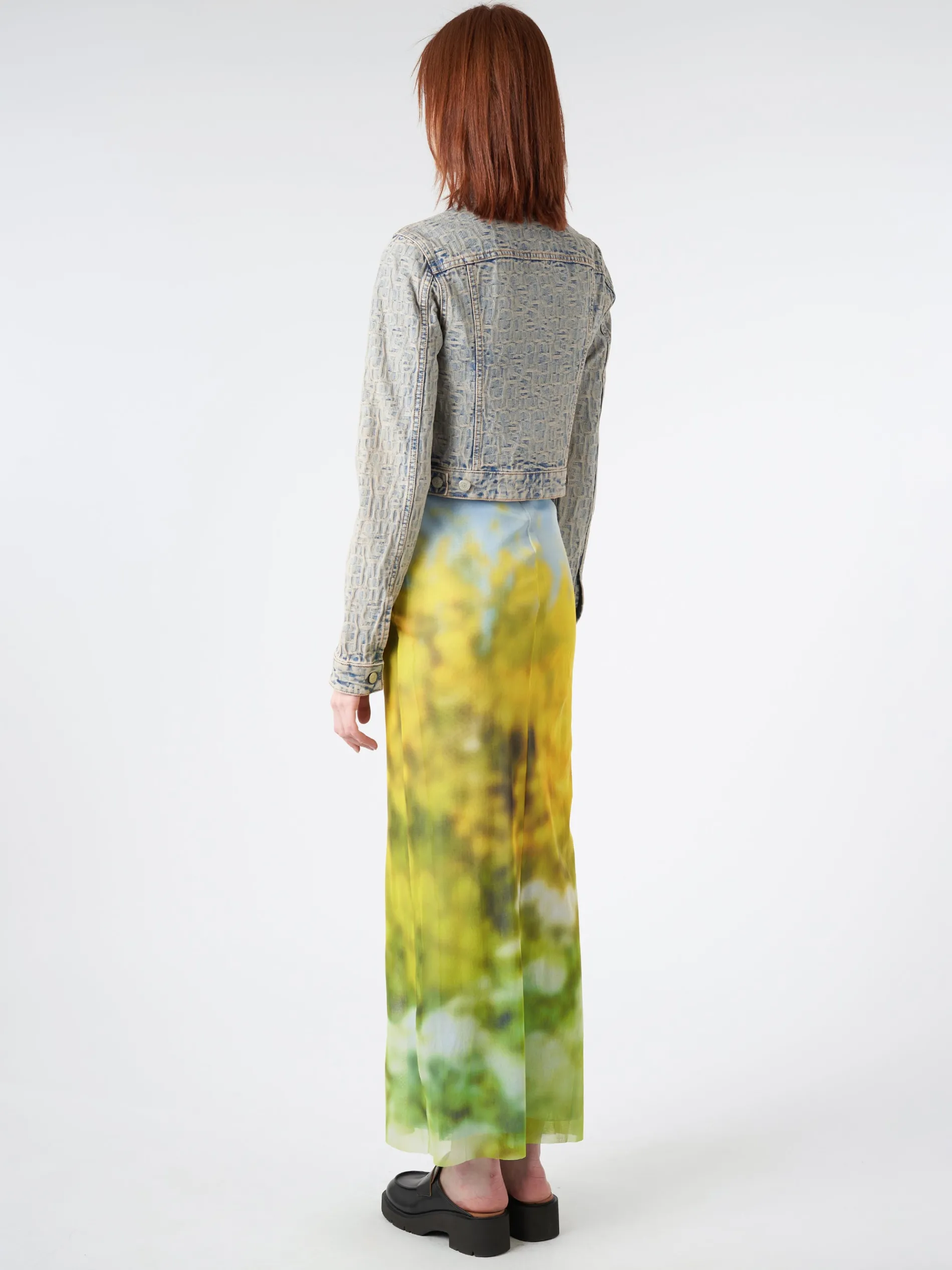 This fitted, cropped denim jacket is cut from a monogram jacquard non-stretch cotton with a used blue wash.