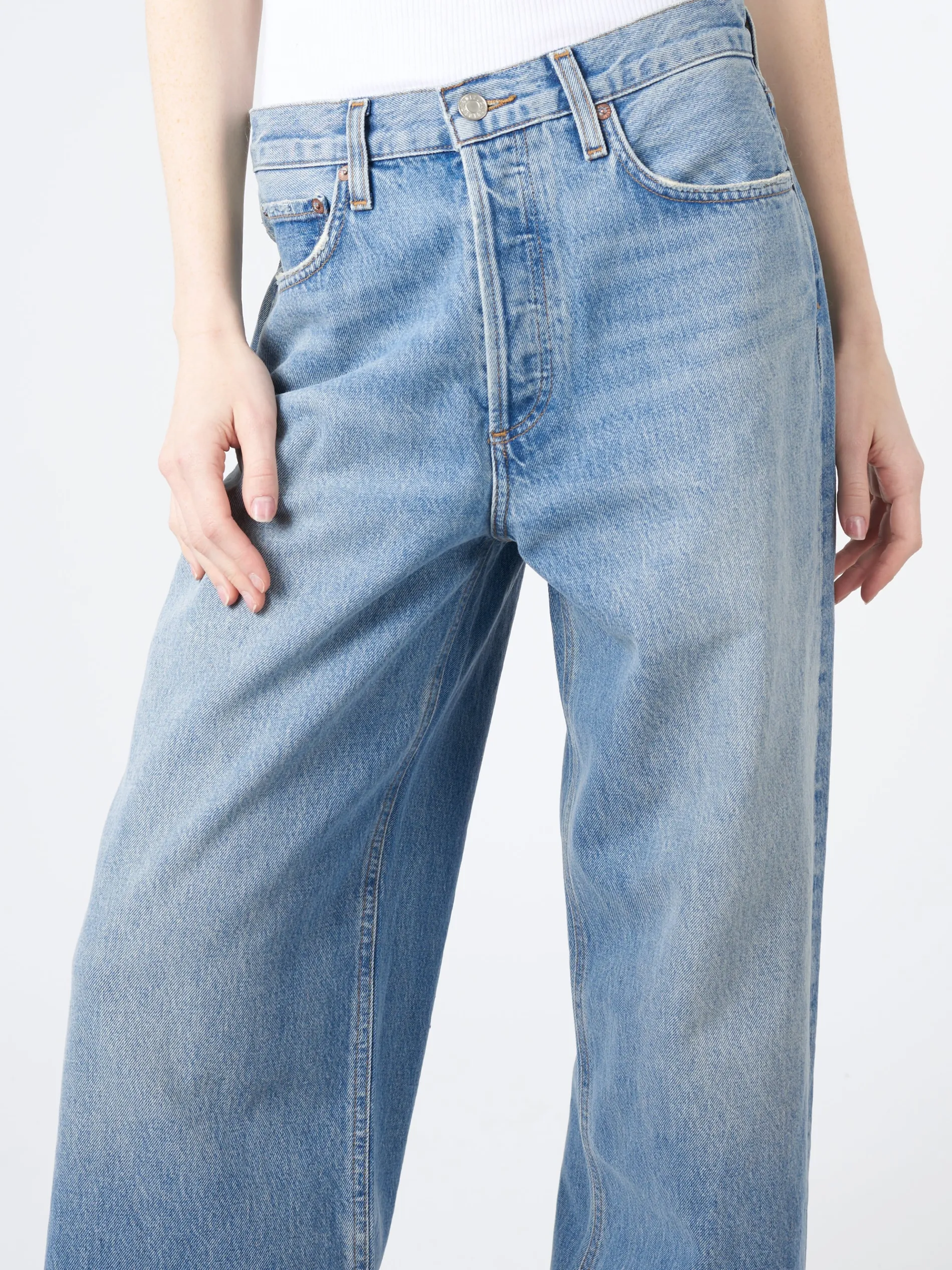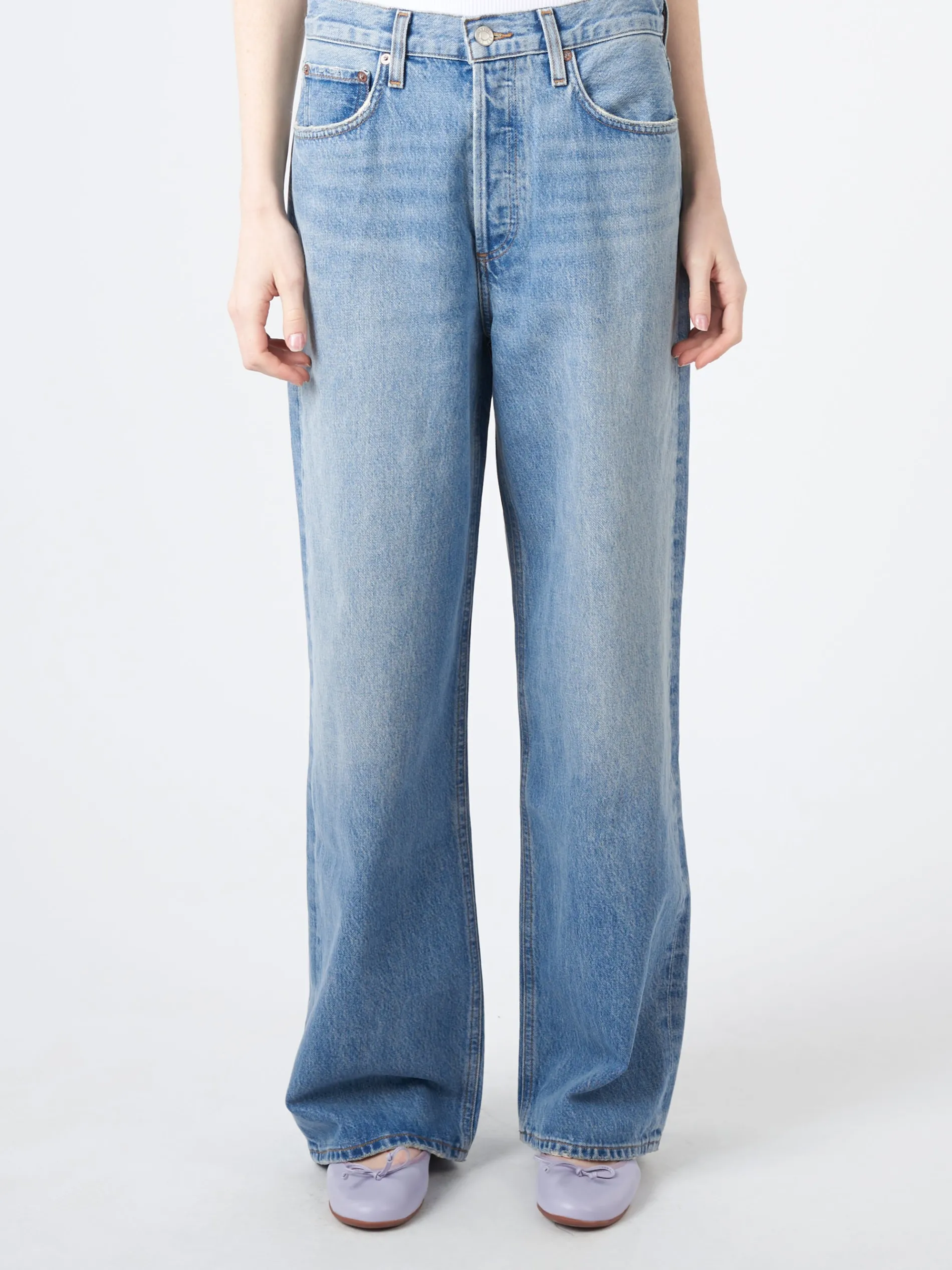 AGOLDE Low Slung Baggy features an ultra-relaxed yet ultra-flattering silhouette. This upsized fit sits low on the hips with a directional, baggy straight leg.