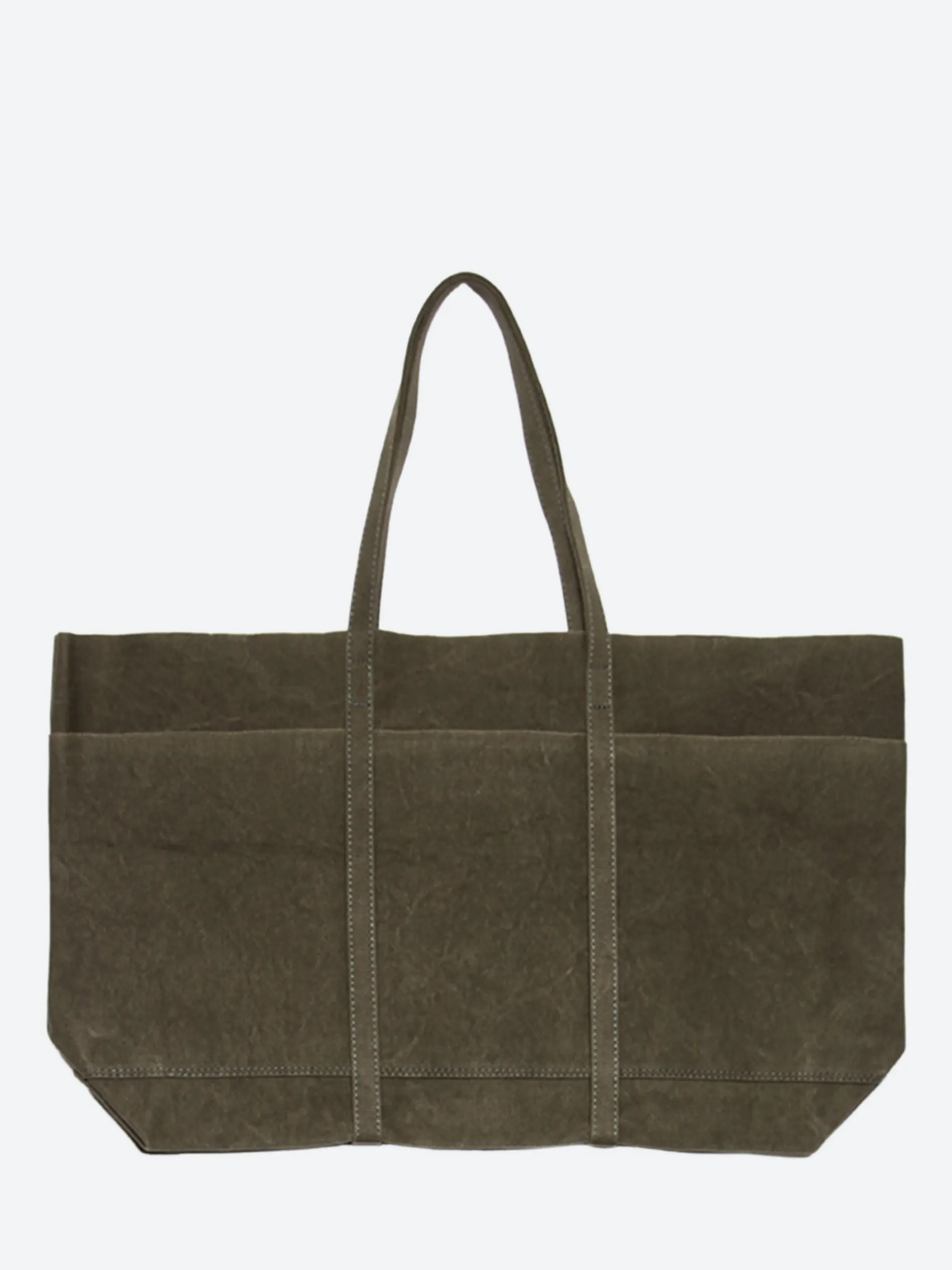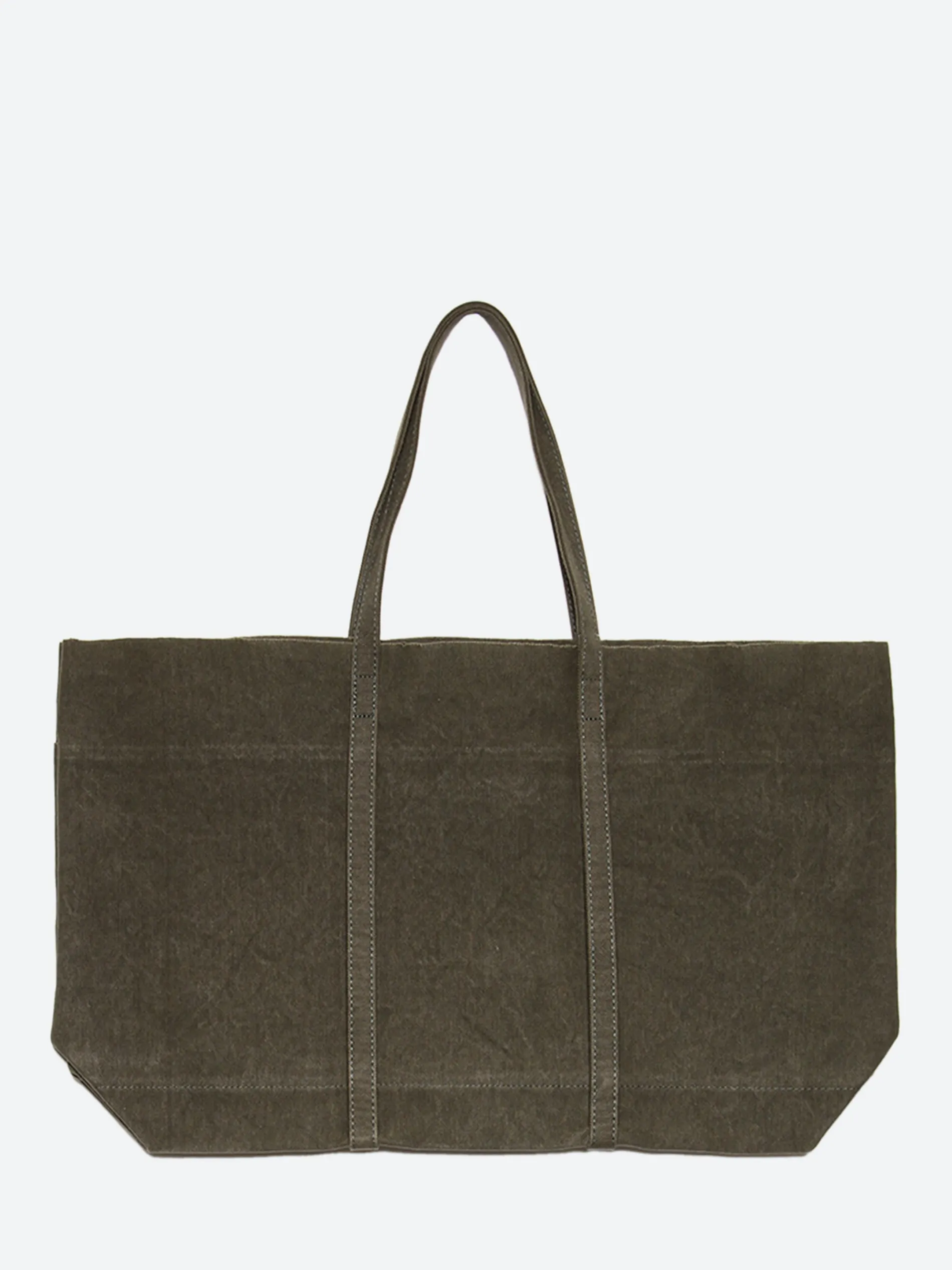 Amiacalva washed canvas tote constructed from pre-washed heavyweight cotton canvas. Features an unlined interior and multiple pocketing for organization.