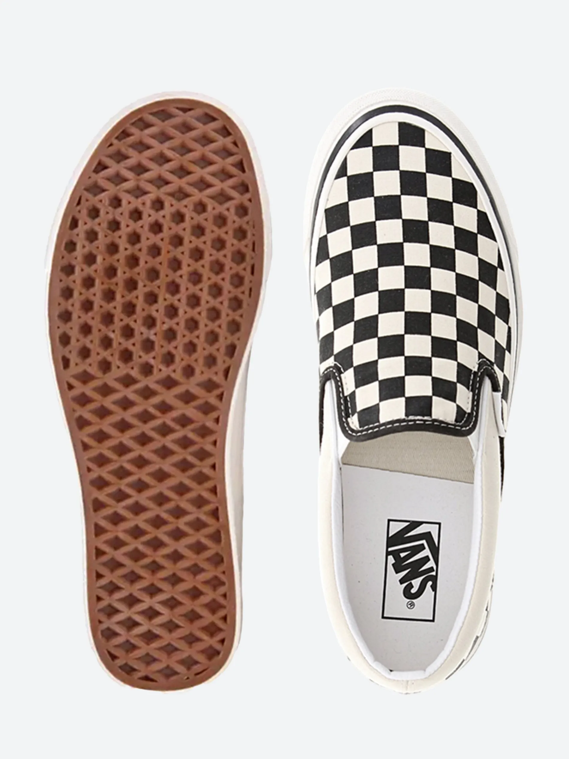 The Anaheim Factory Classic Slip-On 98 DX pays tribute to our first Vans factory in Anaheim, California, by borrowing details from the original style and offering modernized comfort with upgraded Ortholite® sockliners.