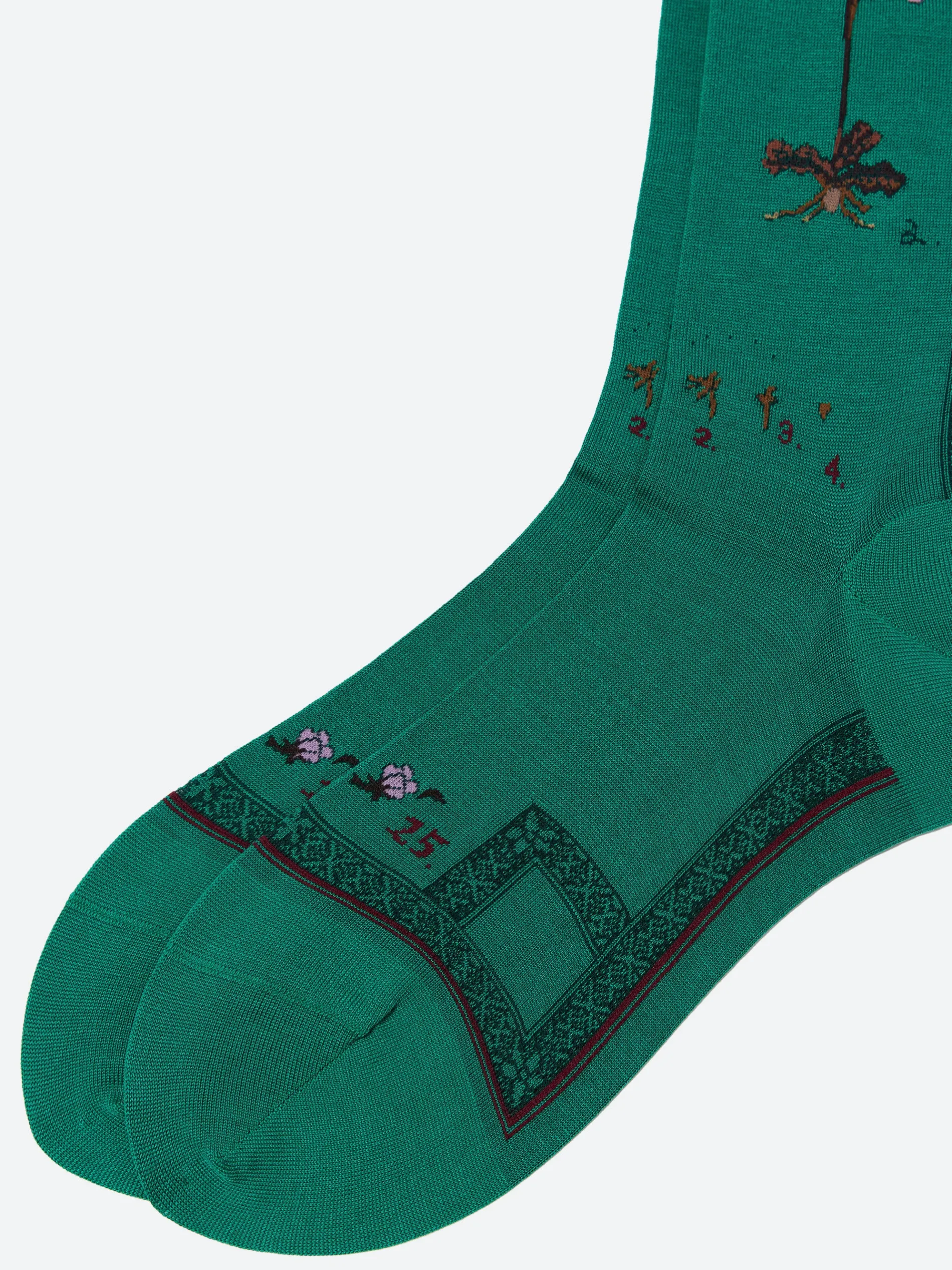 Antipast socks are whimsical and playful, crafted from a fine-gauge cotton and nylon knit blend. They feature a beautiful floral jacquard pattern that adds a touch of charm to any outfit.