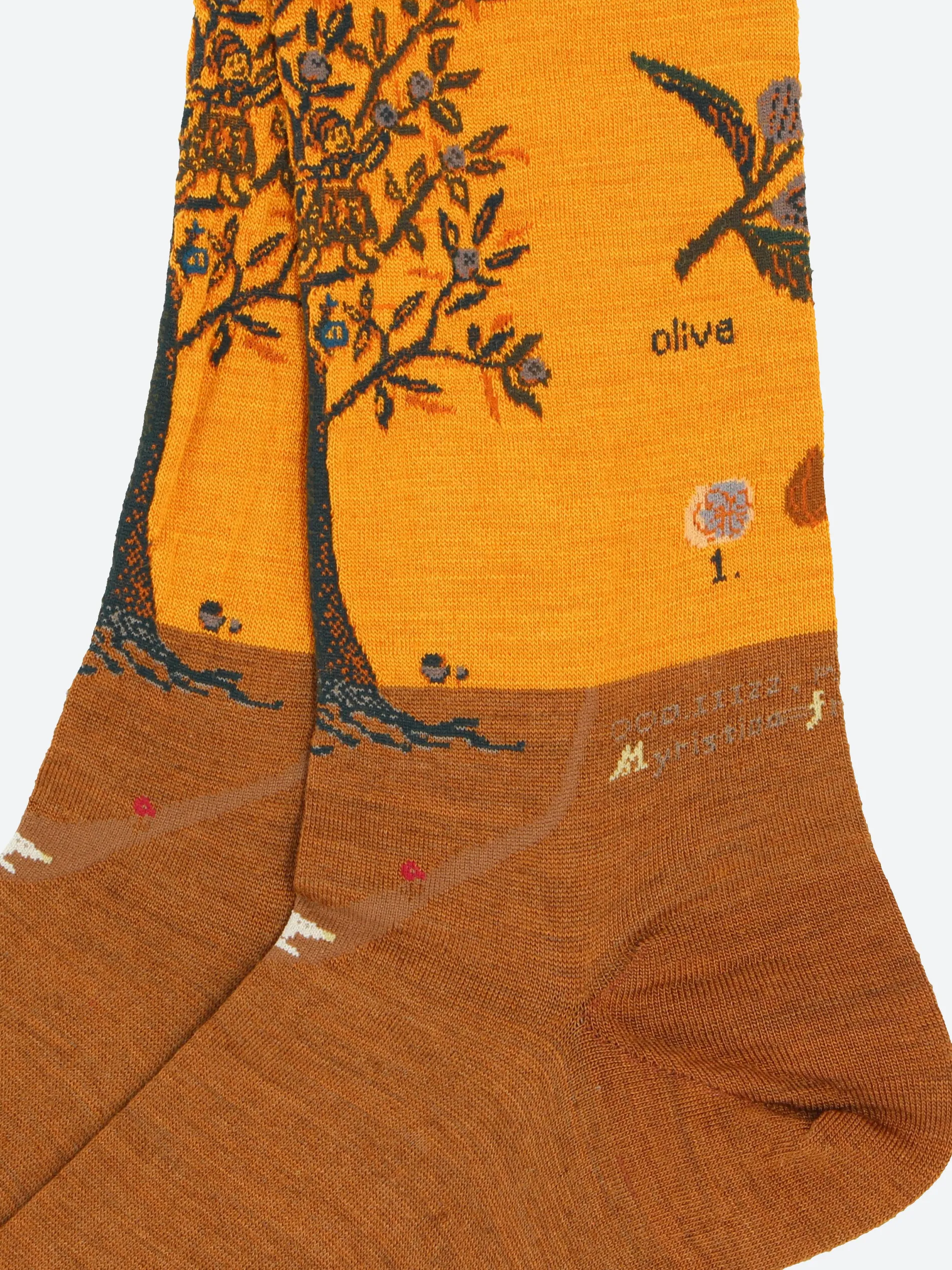Antipast crew length socks knitted in a fine gauge blend with a botanical jacquard illustration.