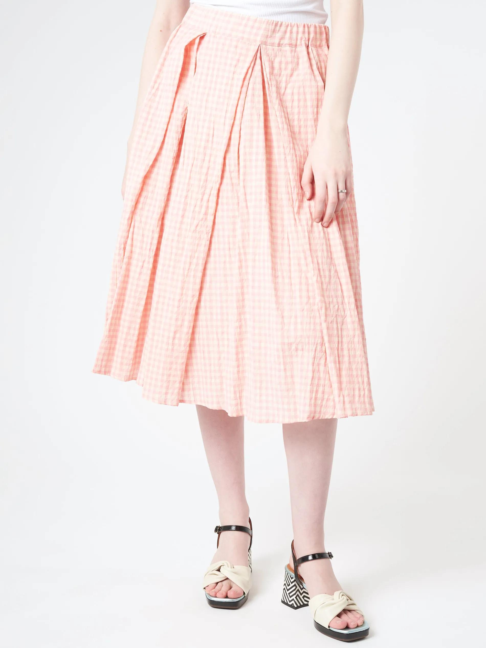 Crafted from gingham cotton, this lightweight skirt features an elasticated waist and fine gathering from the waistband, creating incredible volume.