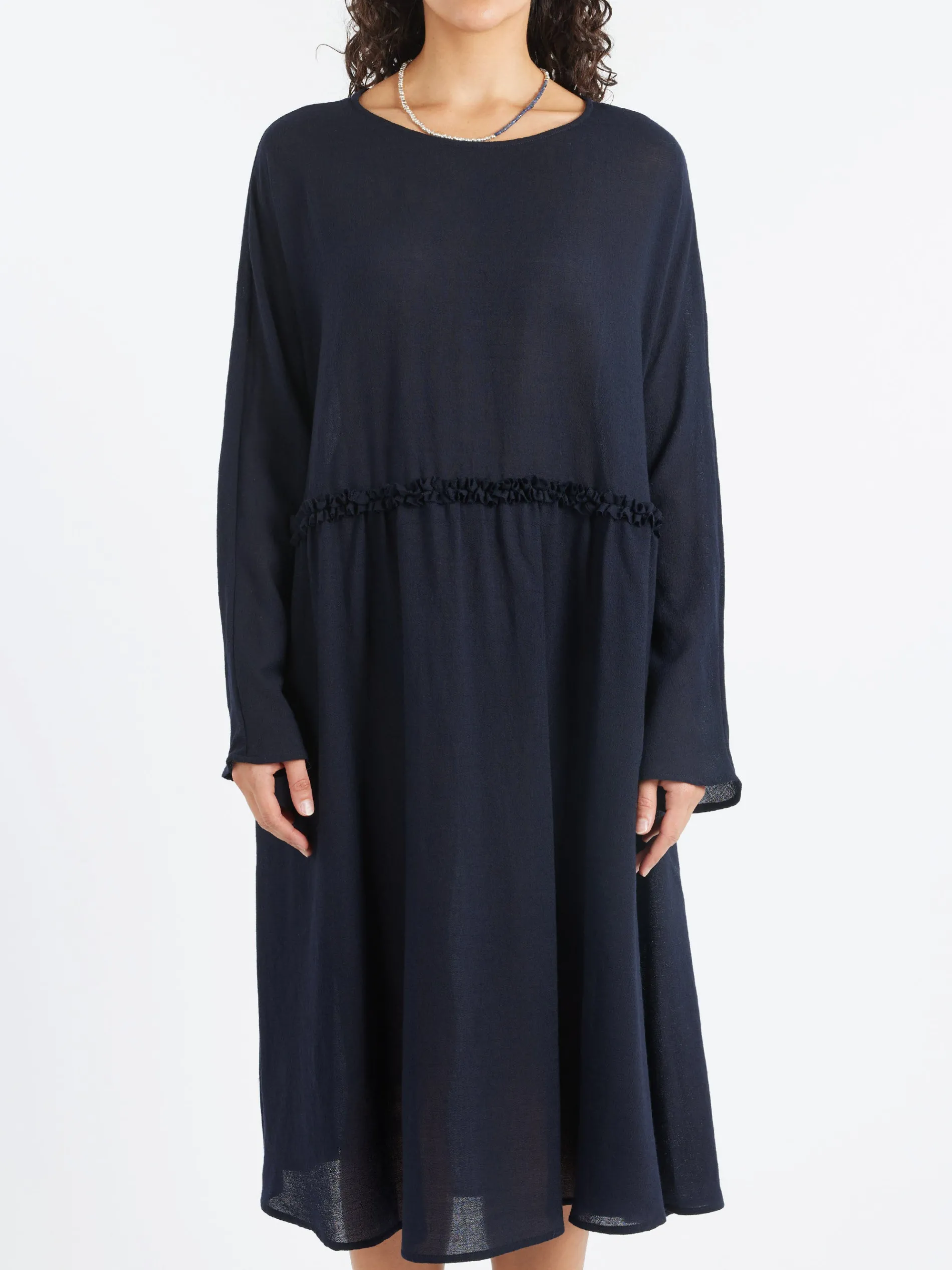 ApuntoB signature A-line tunic dress in a dark navy gauzy wool.