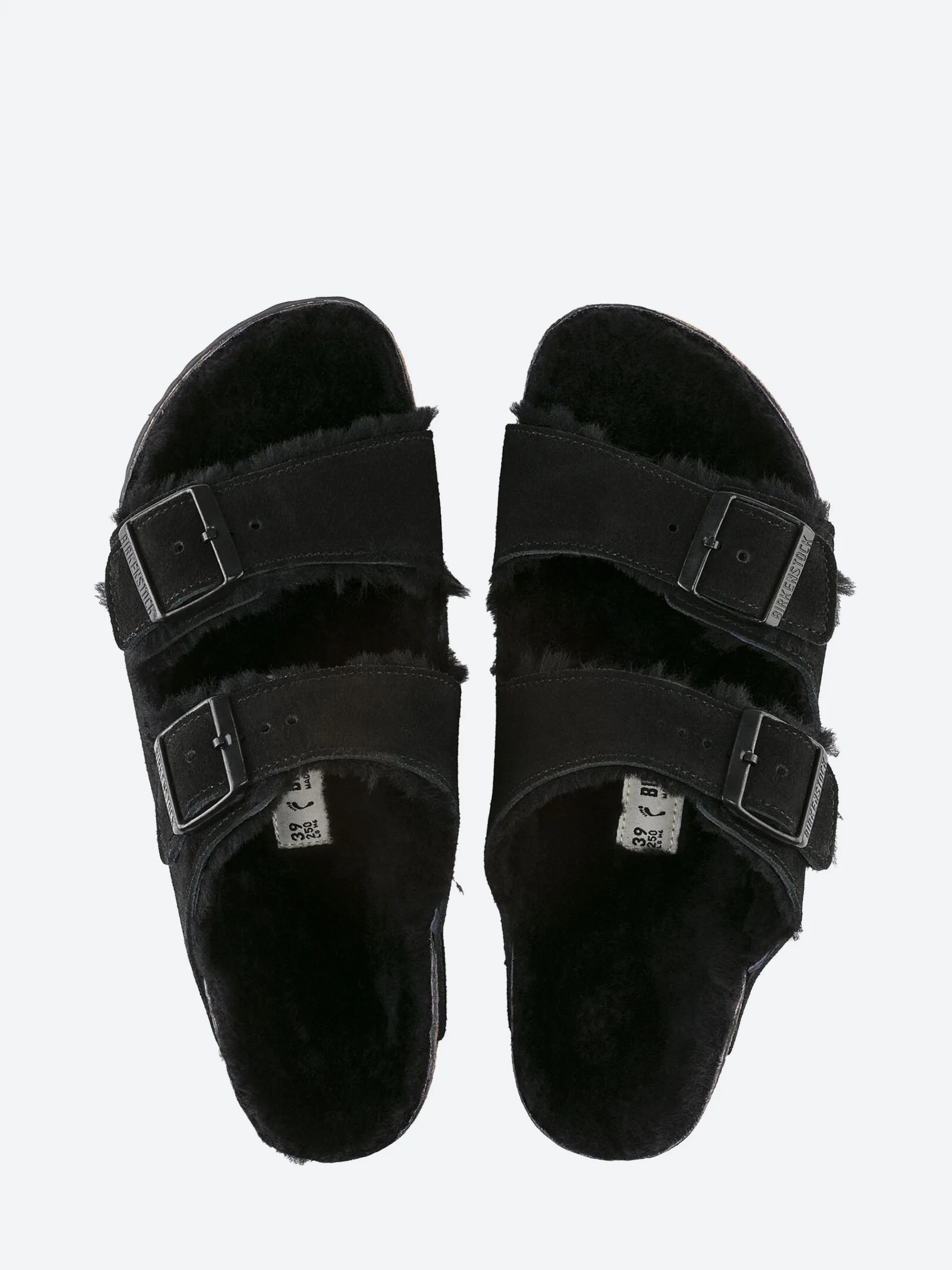 - Shearling footbed and straps