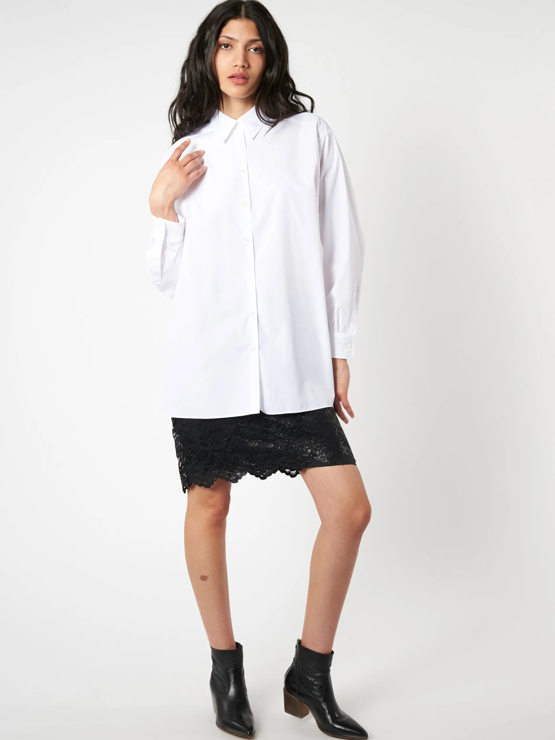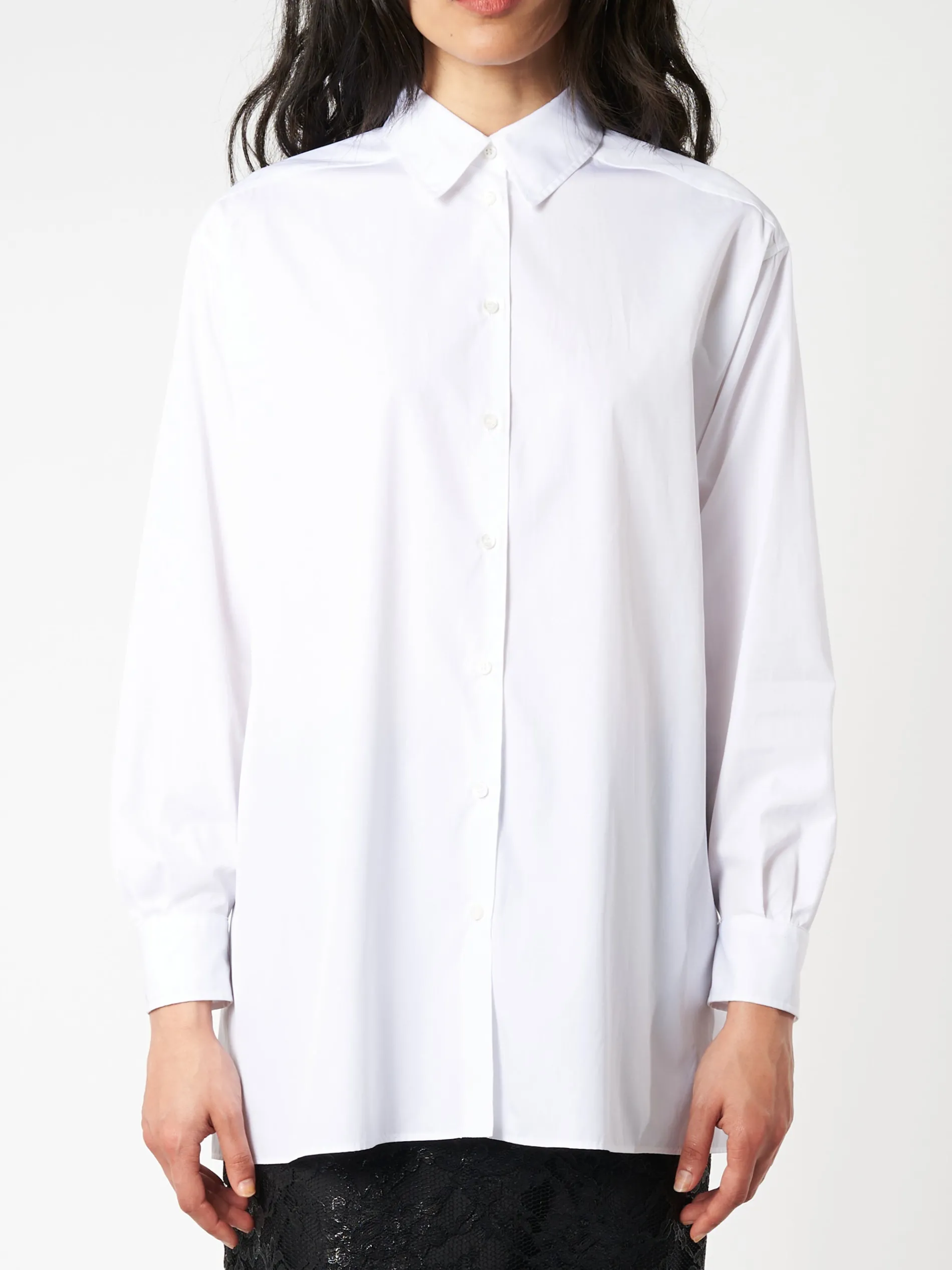 Aspesi cotton poplin shirt is ideal for layering under knits and jackets. Cut for a loose fit.