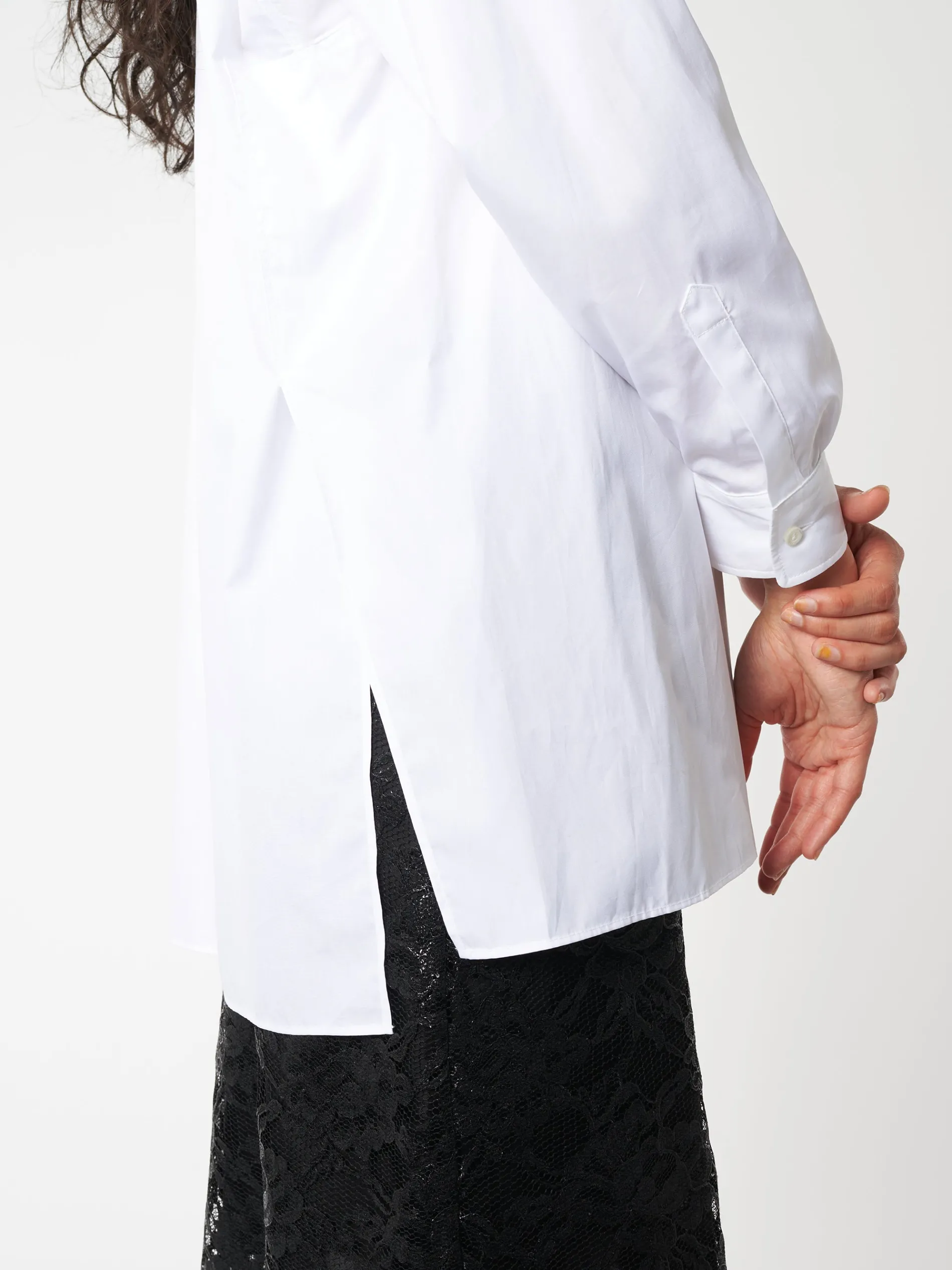 - Long sleeves with buttoned cuffs